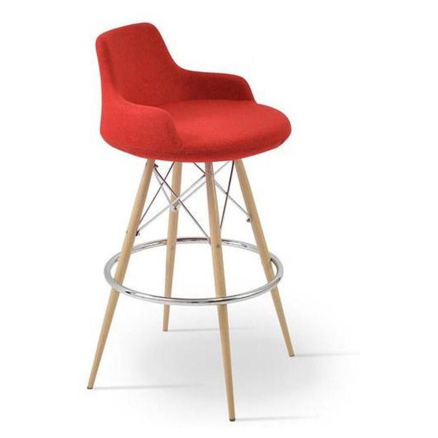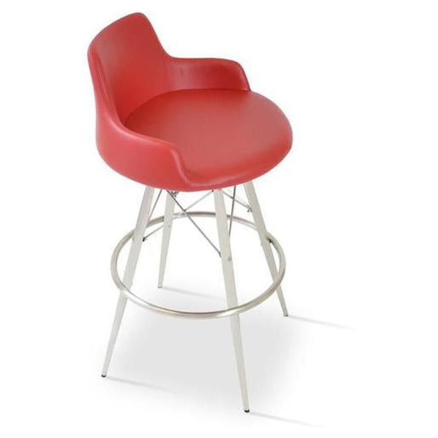• Puntos técnicos clave: Las patas de metal están disponibles en varias acabados, y el taburete está equipado con reposapiés de acero cromado, fijados dentro del marco de cuatro patas,