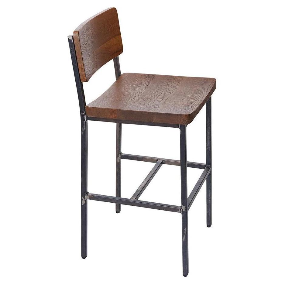 Este taburete de altura de mostrador presenta un diseño industrial moderno,