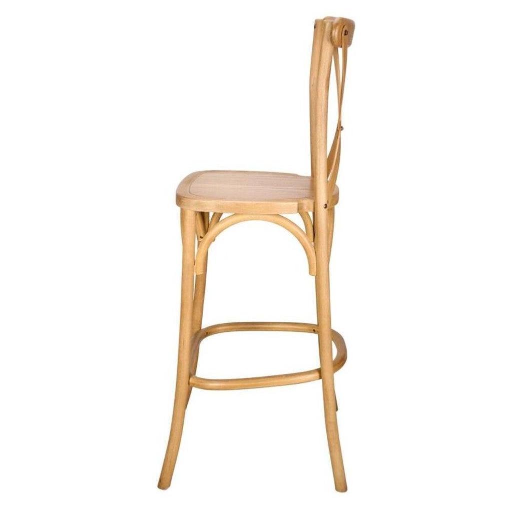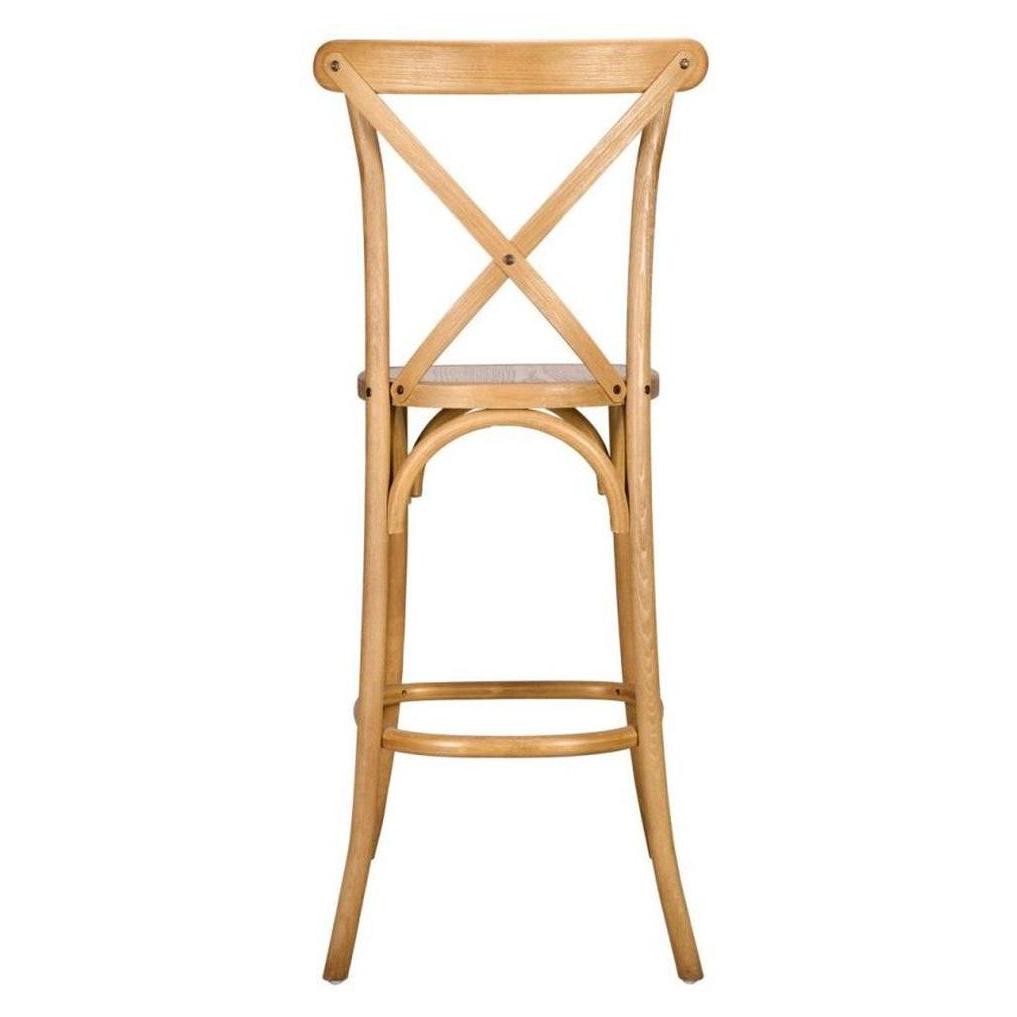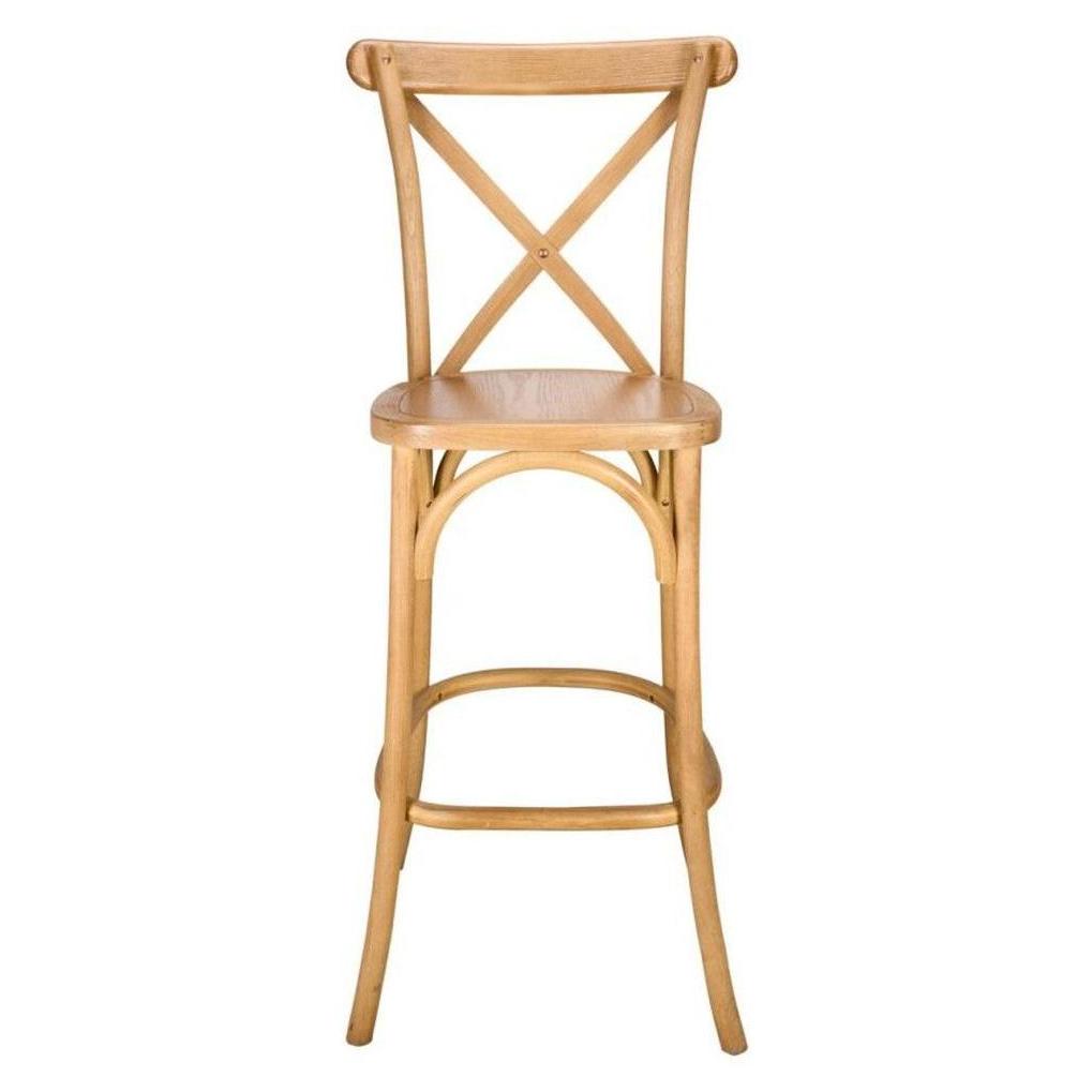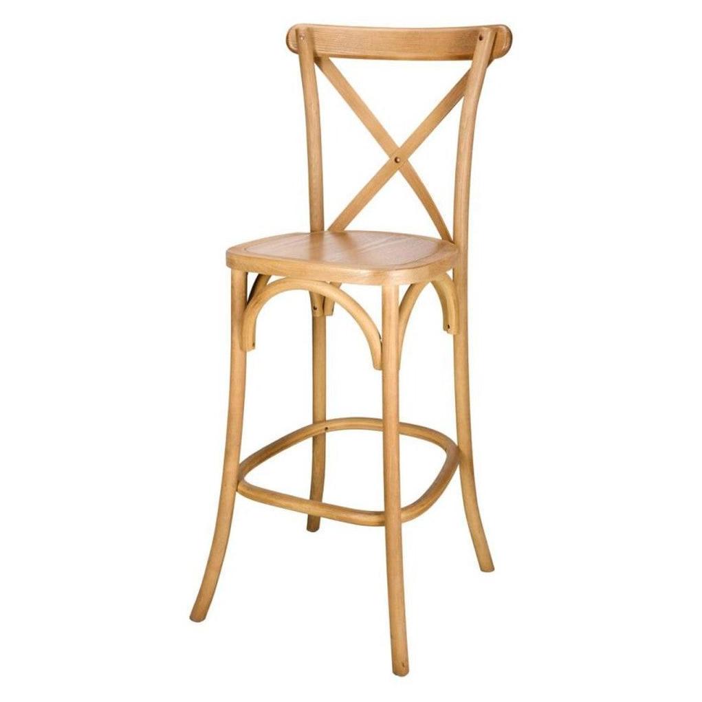 Taburete de bar apilable de madera de olmo con respaldo cruzado