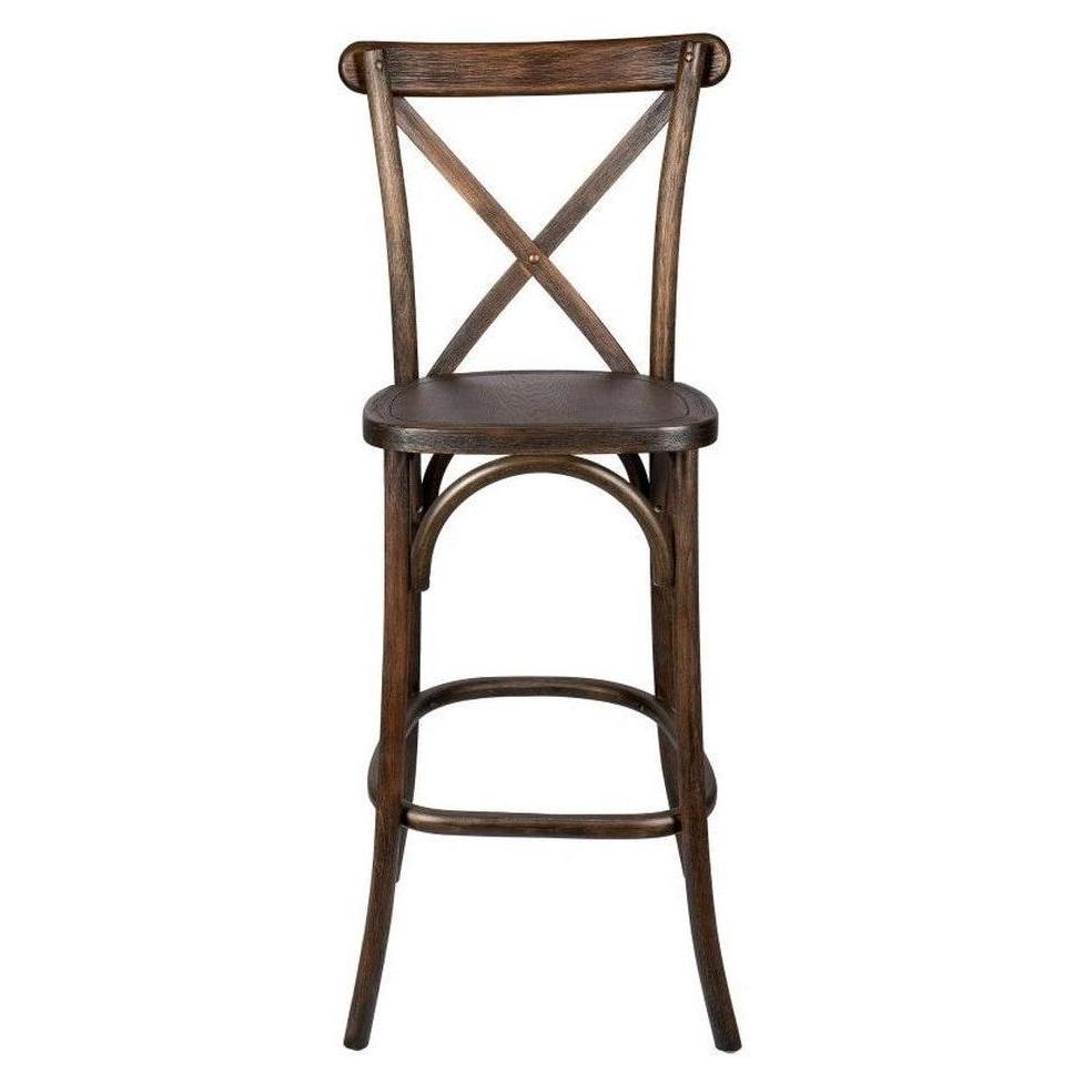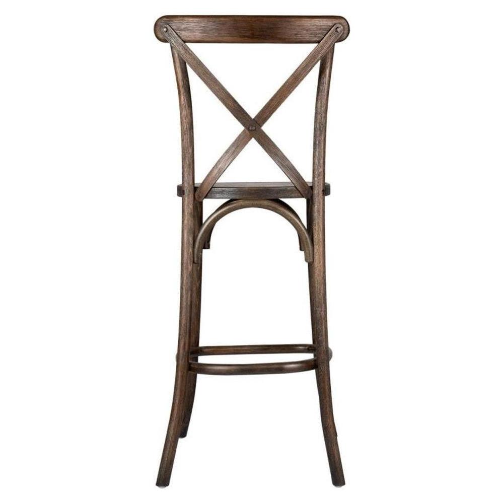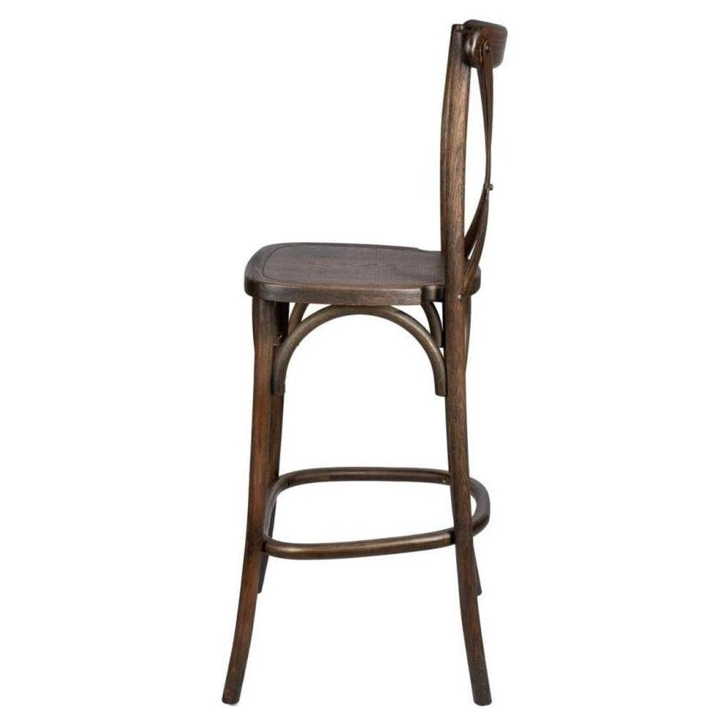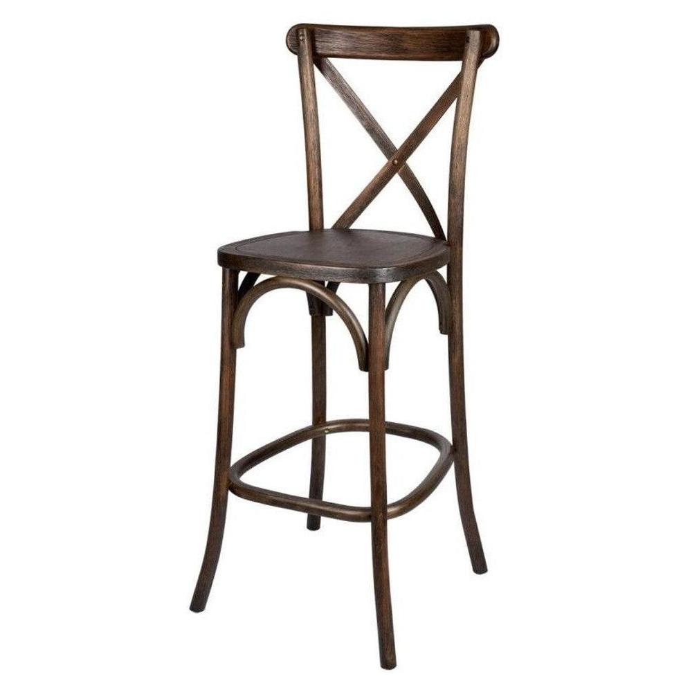 Taburete de bar apilable de madera de olmo con respaldo cruzado