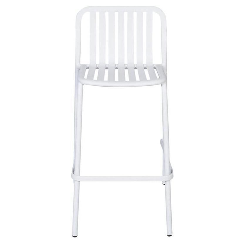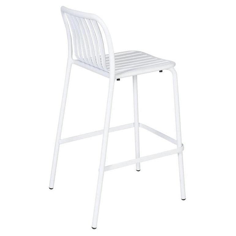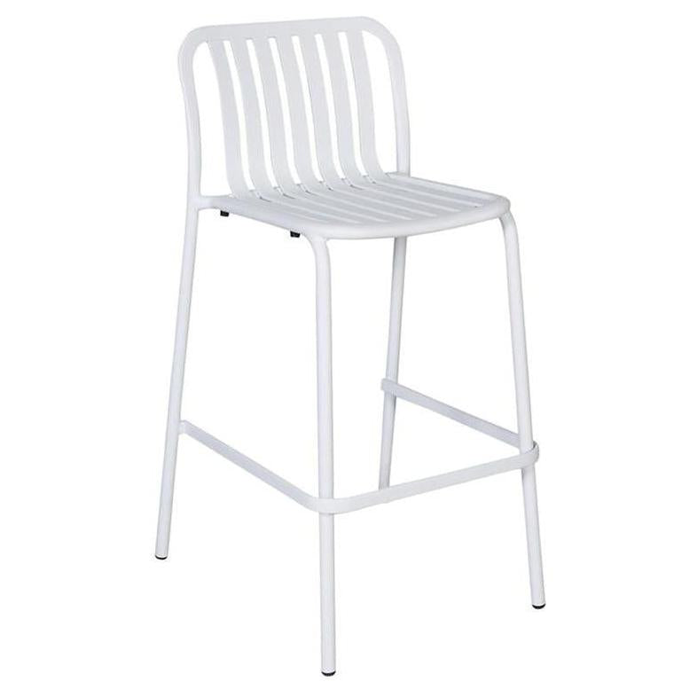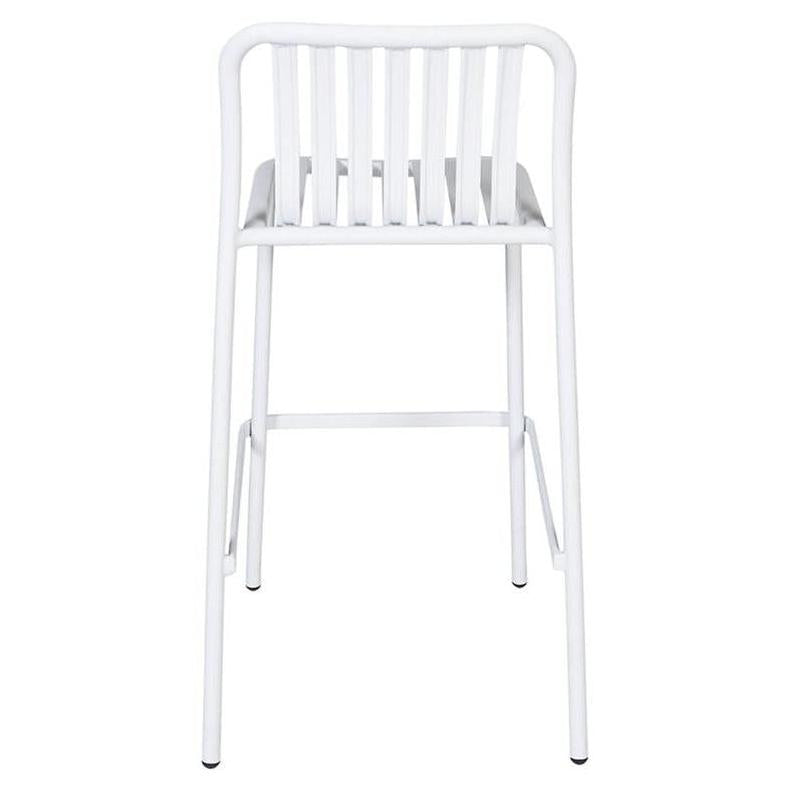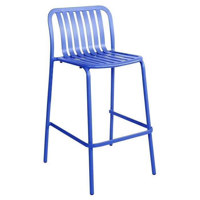 Este taburete de bar exterior apilable combina modernidad y comodidad gracias a su diseño vertical y asiento curvado,