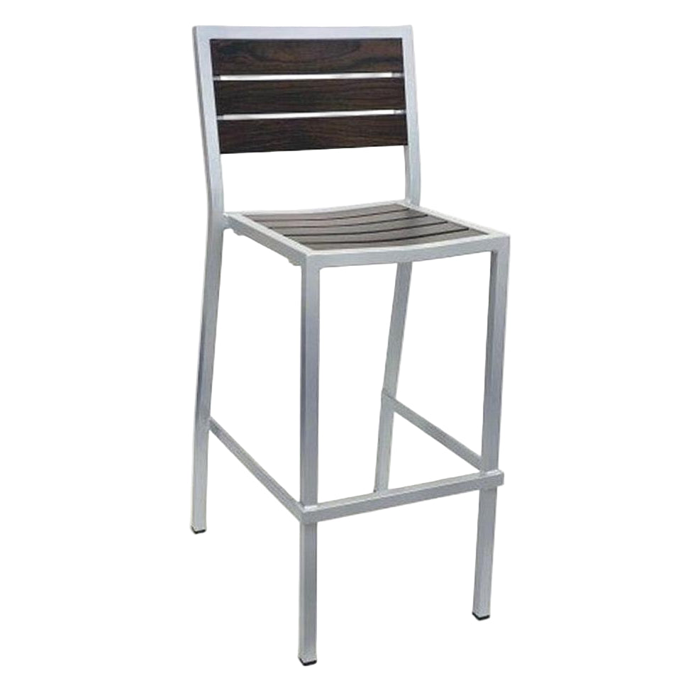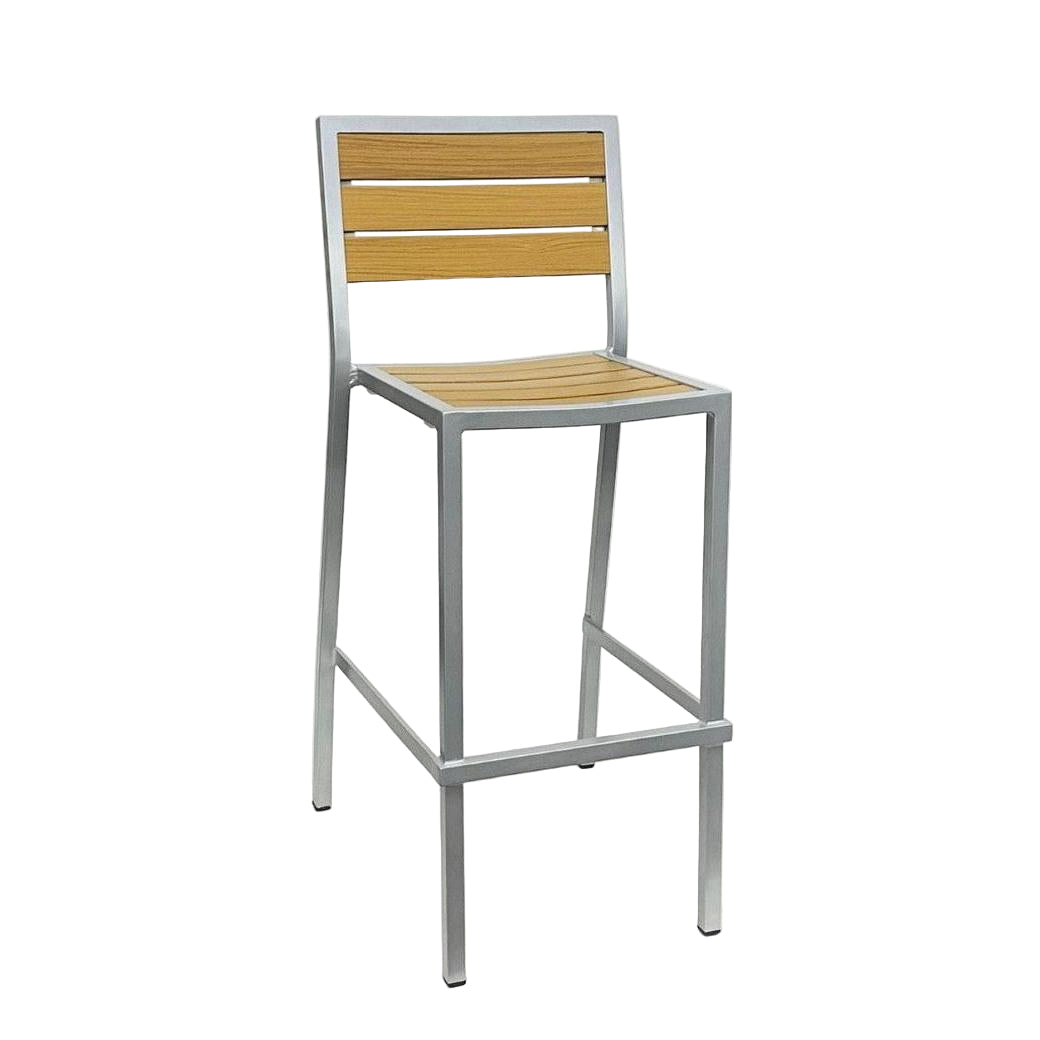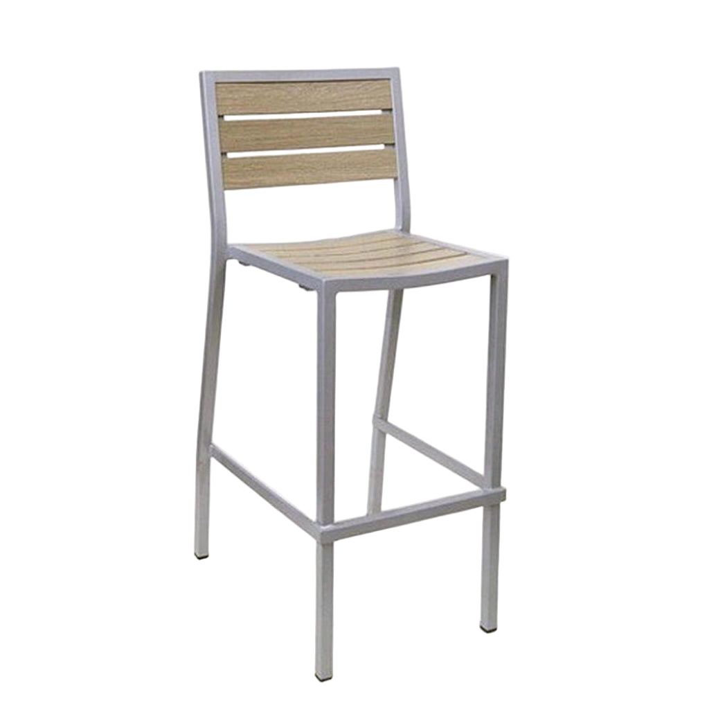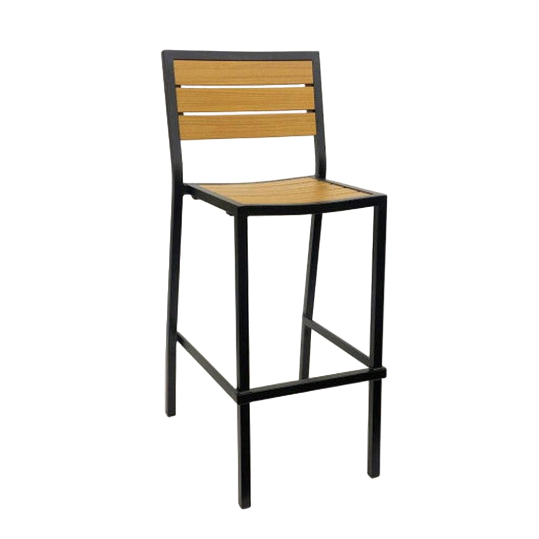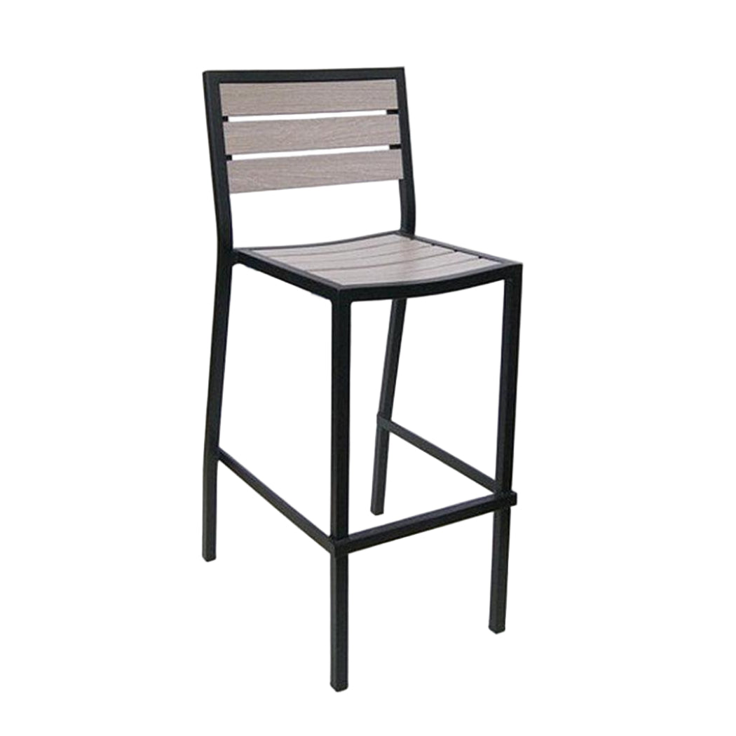 Este taburete de bar está diseñado para uso en exteriores, ideal para entornos comerciales,