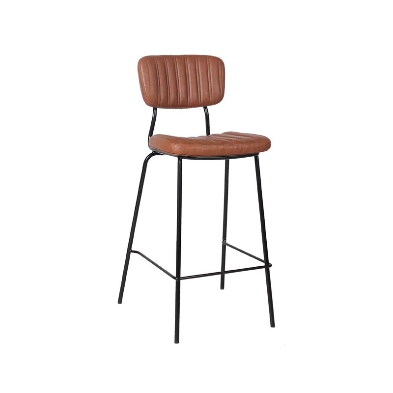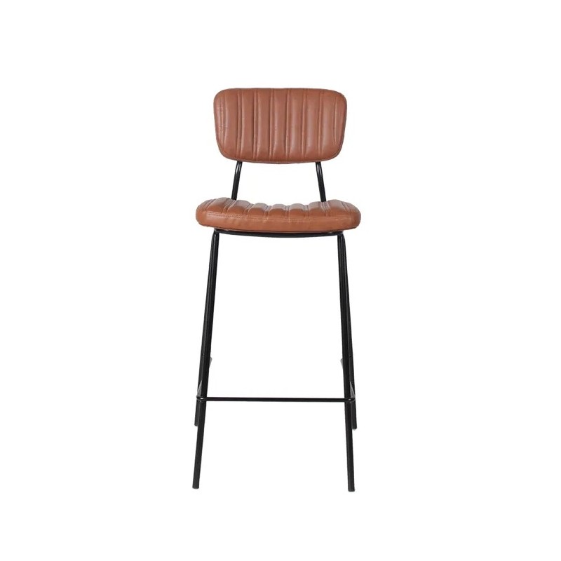 La estructura de metal garantiza solidez y estabilidad, además de ofrecer resistencia al uso intensivo. El asiento y respaldo están revestidos de similcuero marrón, fácil de mantener y agradable al tacto. Esta elección de materiales asegura durabilidad manteniendo un aspecto cálido. El acabado en metal aporta un toque contemporáneo y robusto.