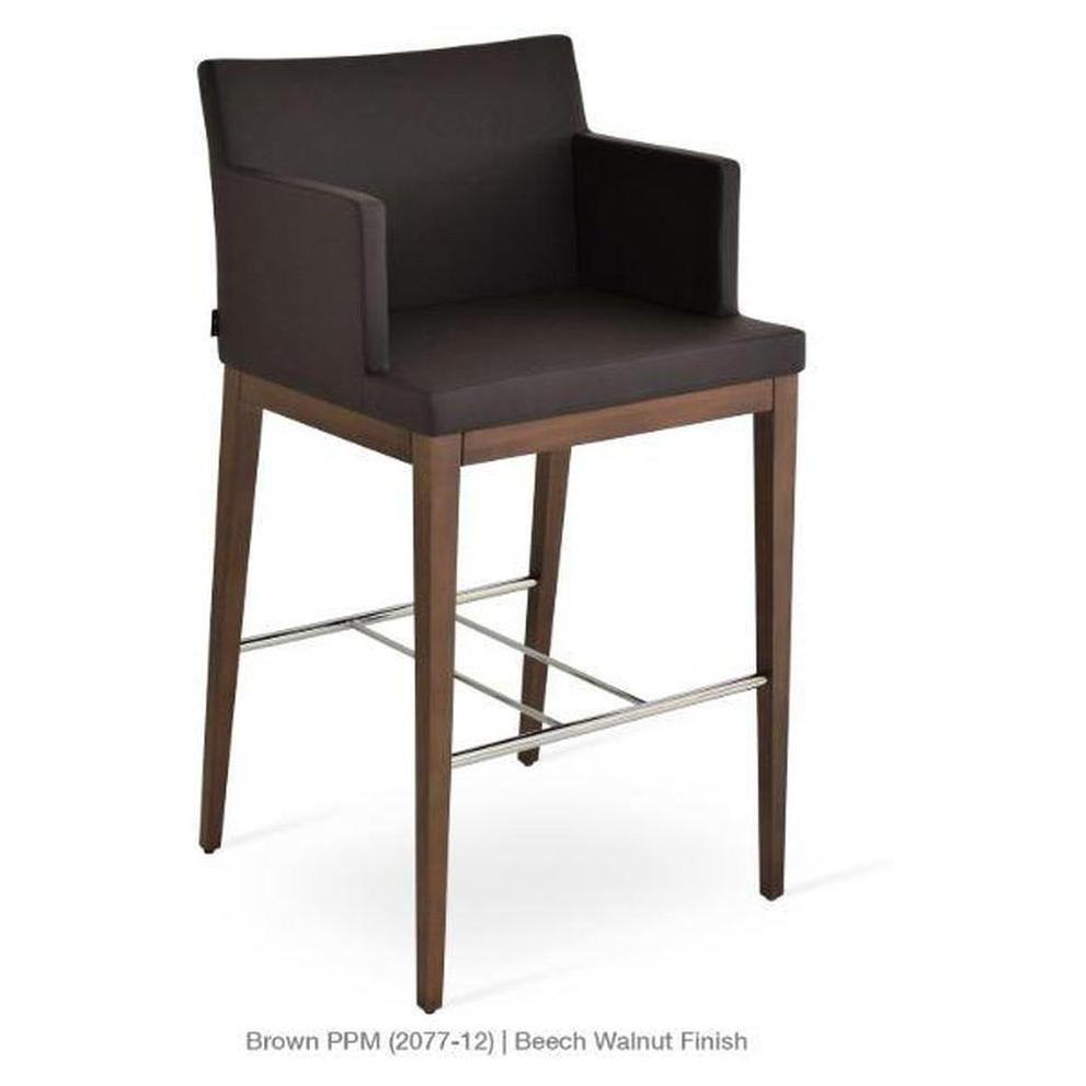 Este taburete de bar de madera está diseñado para uso profesional, combinando confort y estética,