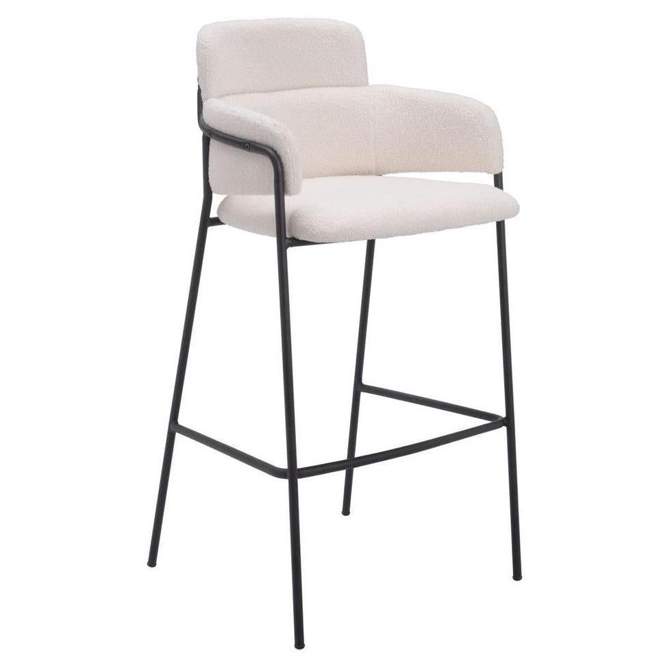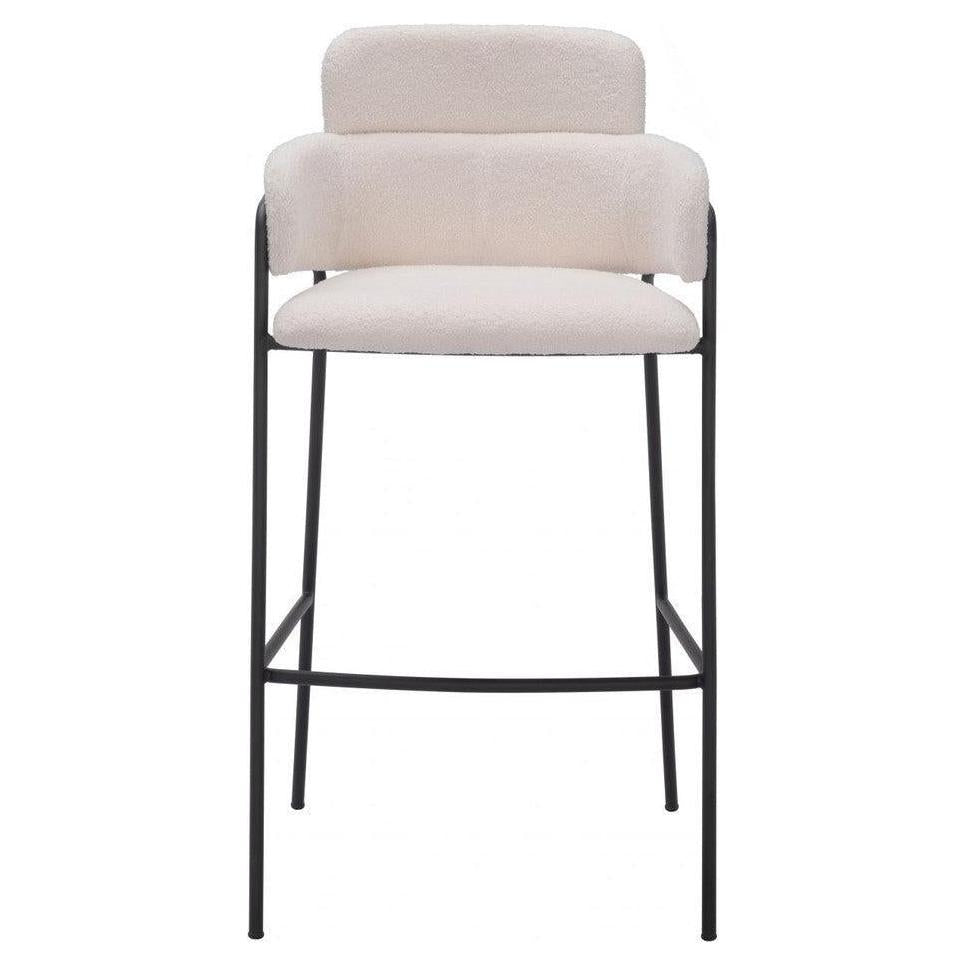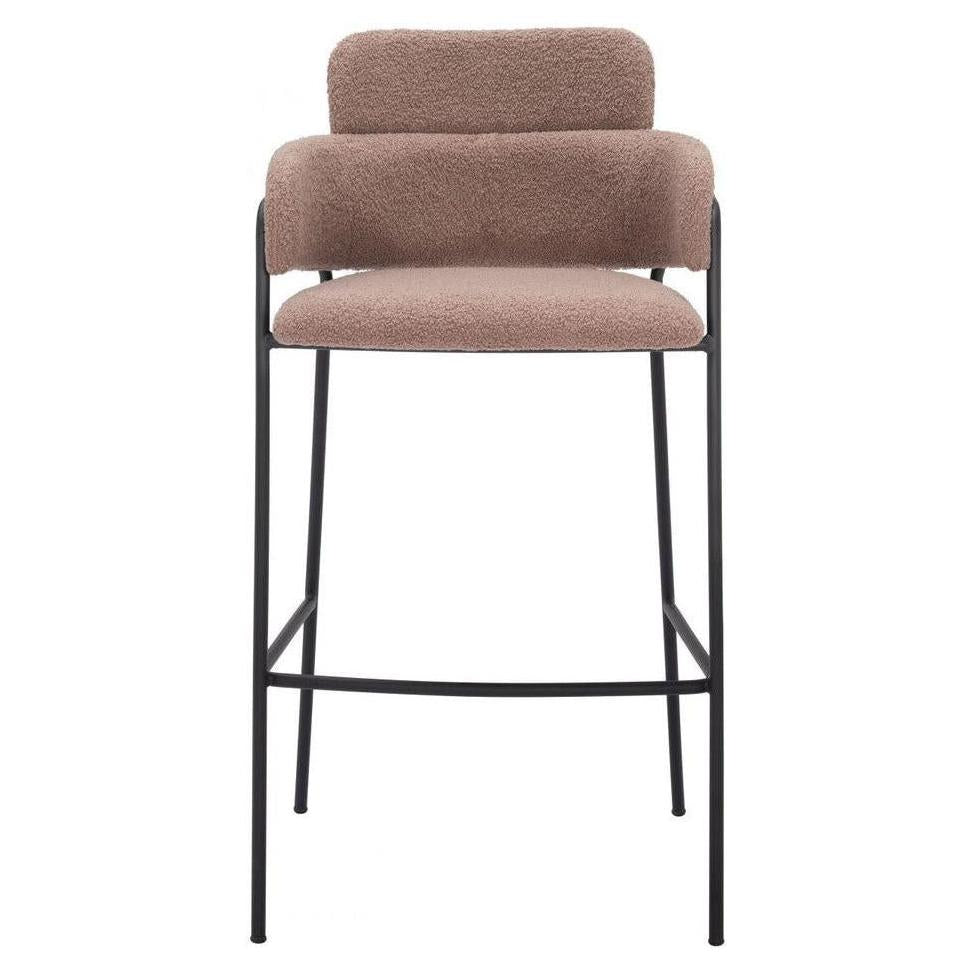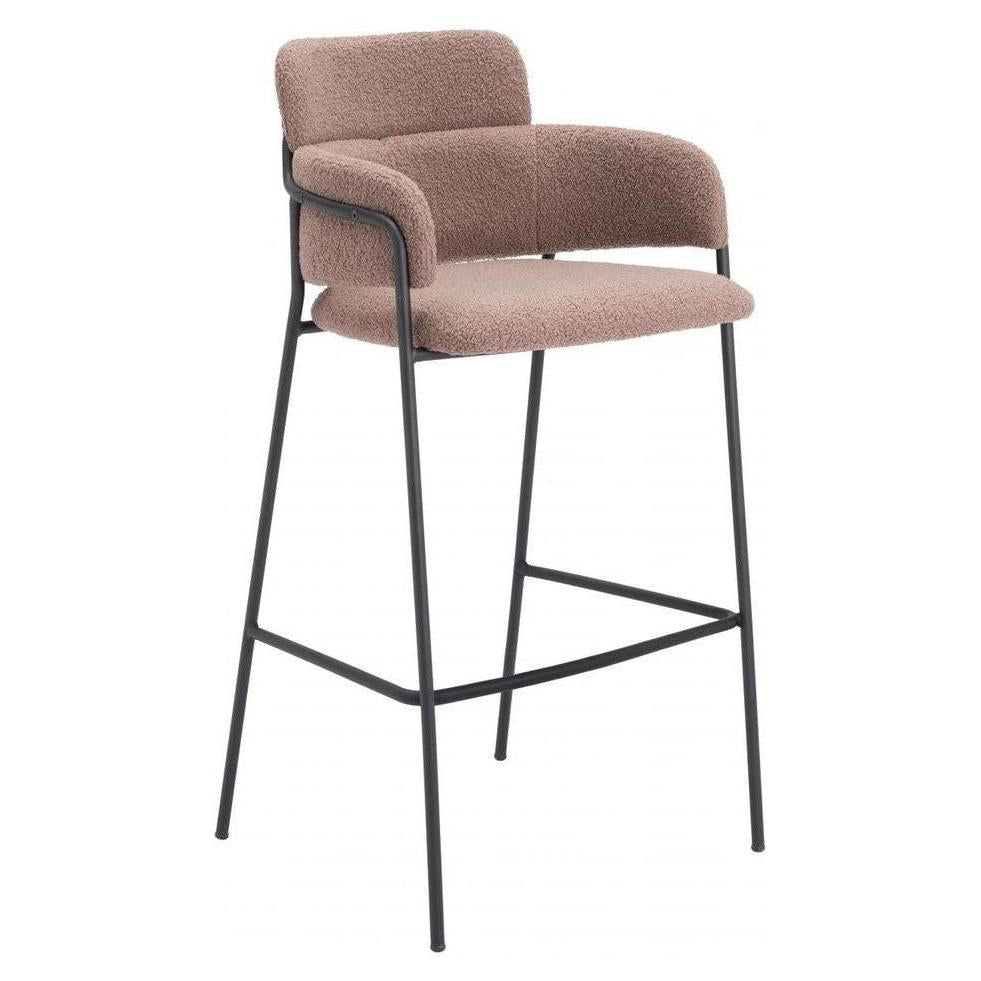 Este taburete de bar presenta un asiento y respaldo elegantemente acolchados, combinados con una estructura robusta,