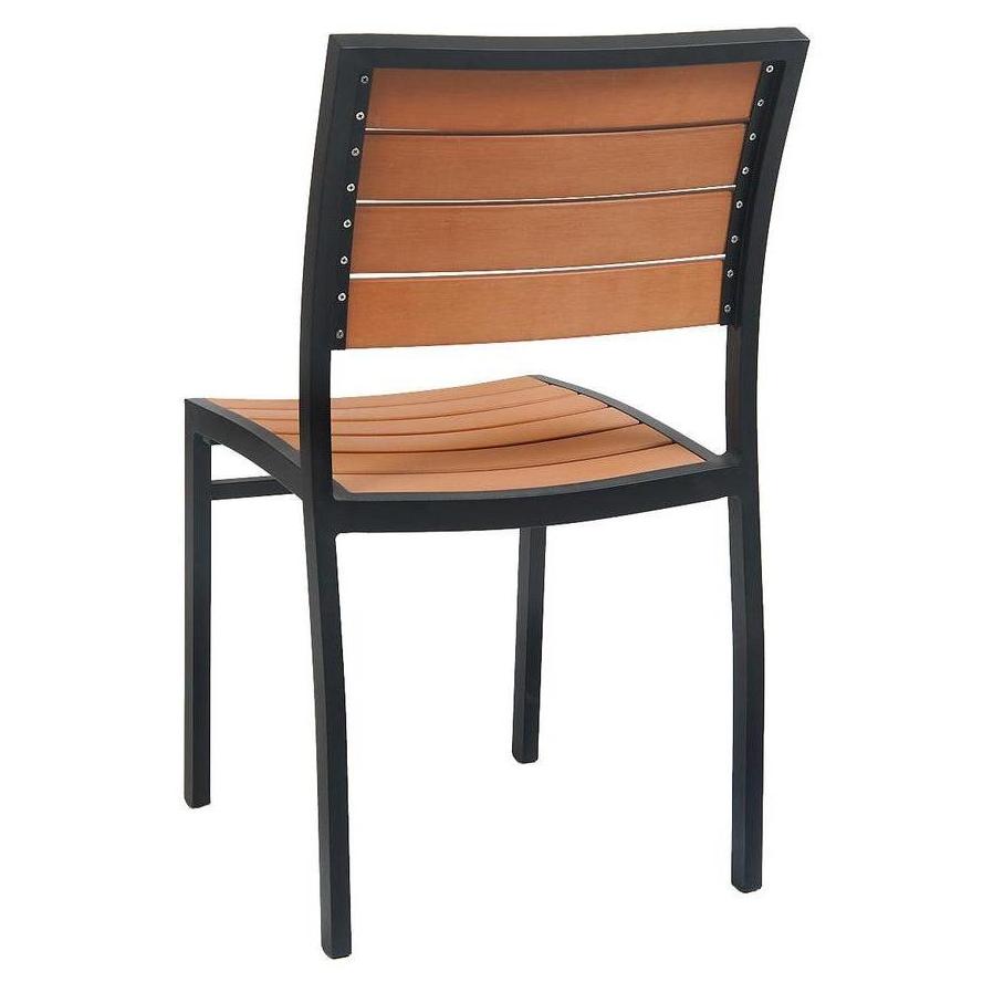 Tumbona exterior de aluminio negro con listones de imitación de teca