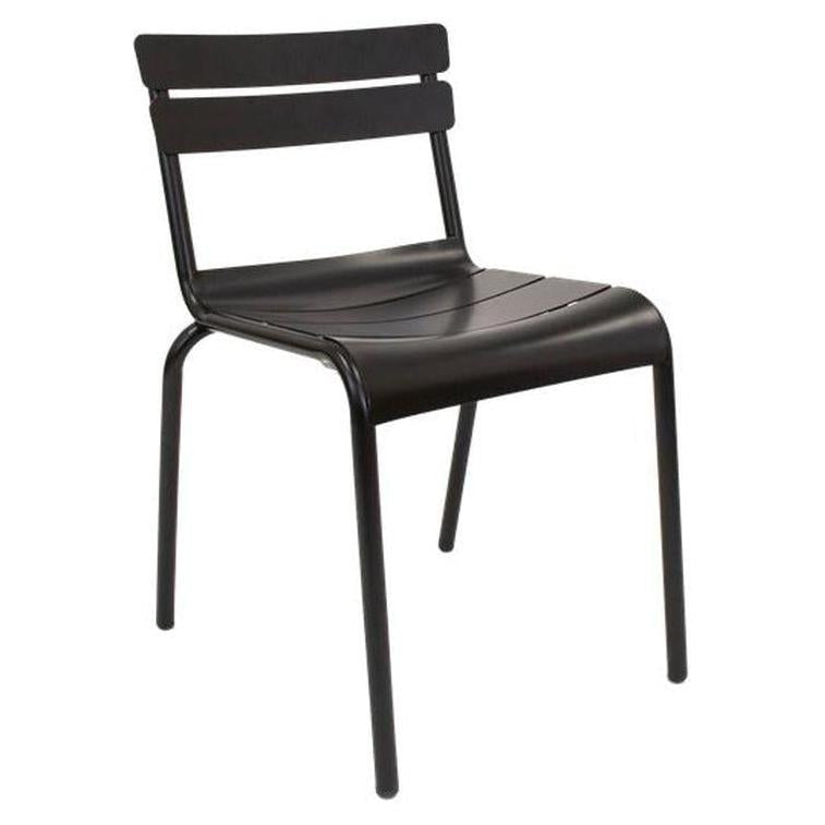 Esta silla de exterior de metal negro está diseñada para uso en exteriores, ideal para terrazas, jardines o espacios públicos,