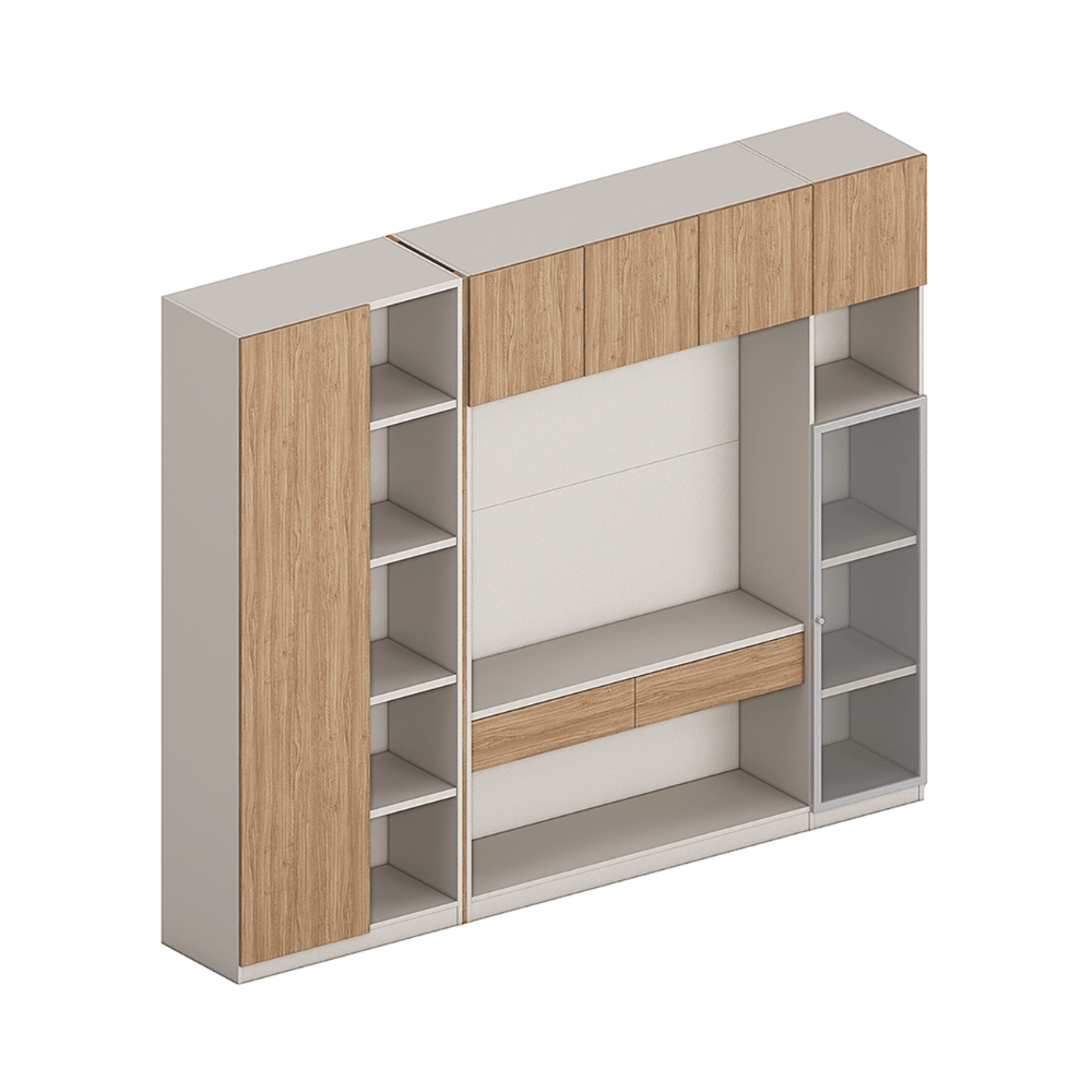 Le rendu visuel de l’armoire est à la fois moderne et raffiné, offrant un toucher agréable. Sa conception robuste assure une bonne tenue dans le temps, même dans des environnements professionnels exigeants.