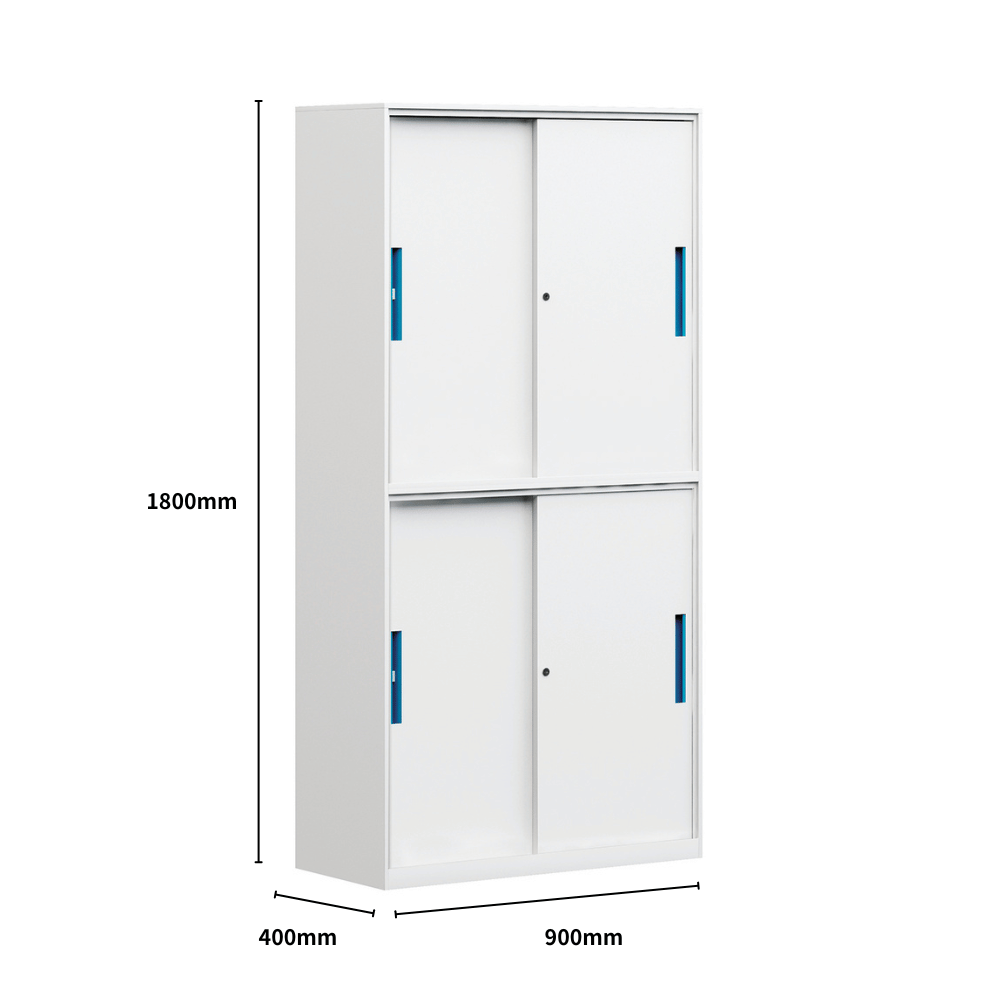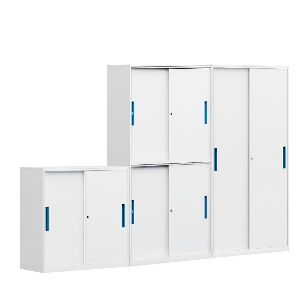Fabriquée en acier à froid de haute qualité, cette armoire assure une surface lisse et une durabilité accrue. Elle est équipée d’étagères fixes en métal, offrant une solution de rangement robuste. Les portes coulissantes, disponibles en acier ou en verre, ajoutent une touche moderne à votre aménagement.
