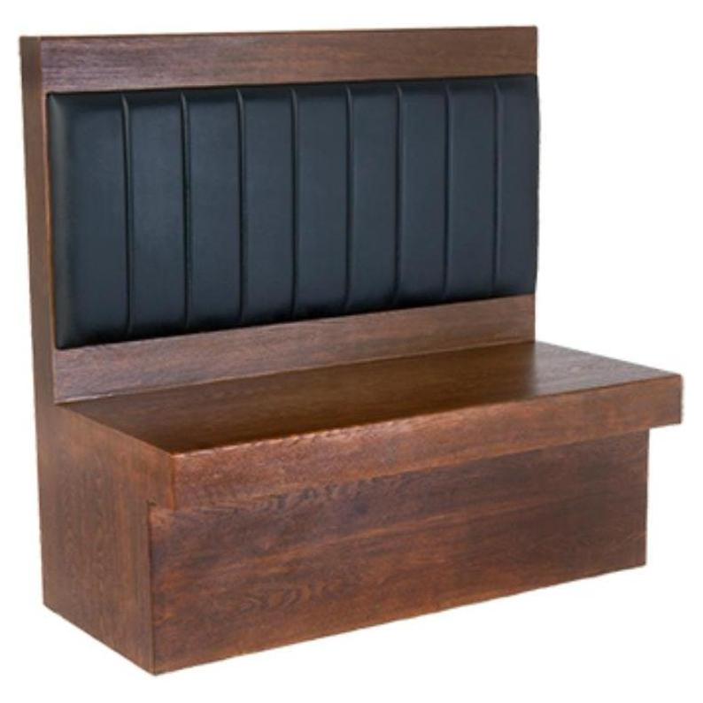 Ces banquettes à dossier rembourré noir sont conçues pour un usage dans les restaurants et les espaces de restauration,