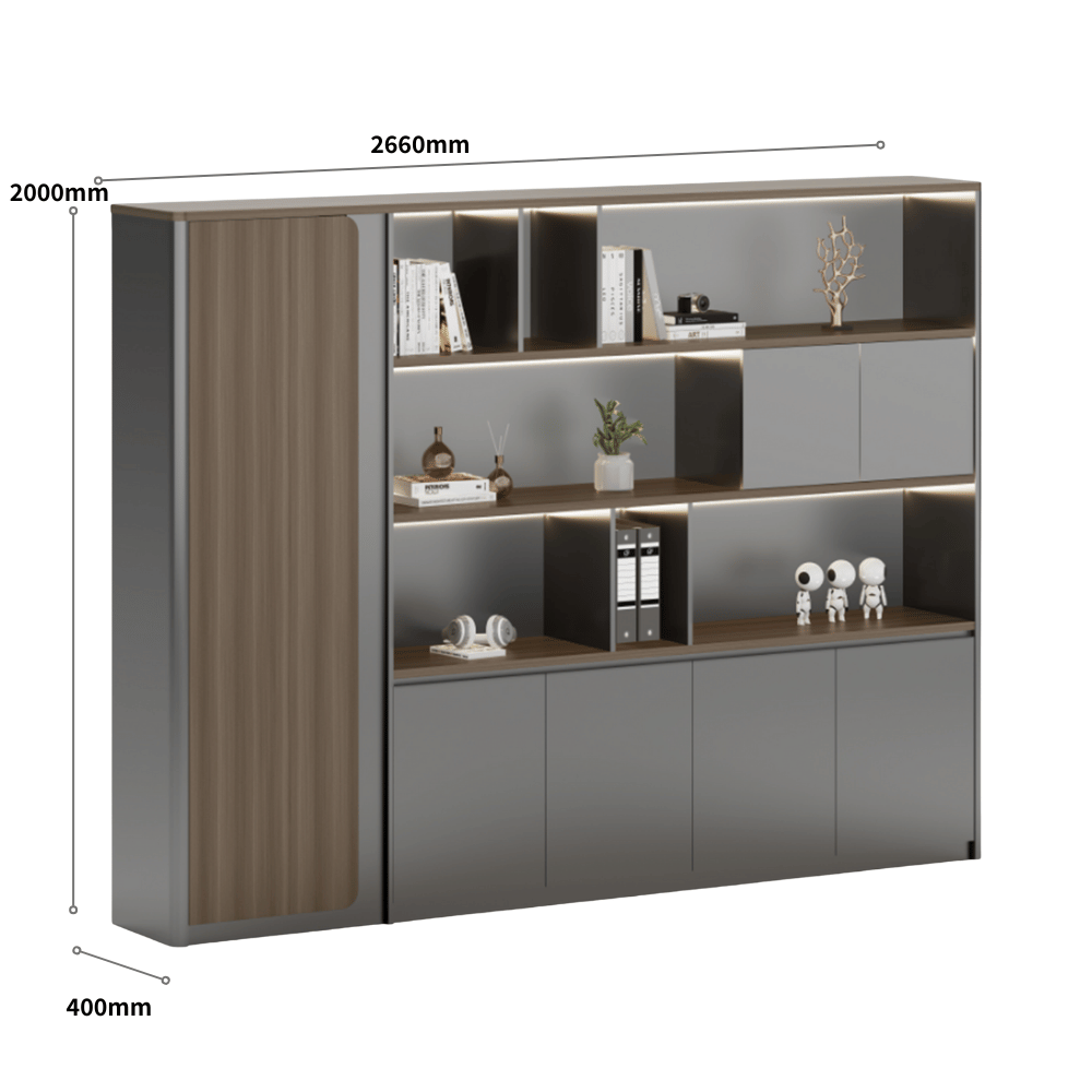 La bibliothèque Vevey-E se distingue par son rendu soigné et son toucher agréable. Sa finition premium assure une tenue dans le temps, préservant son aspect esthétique même après une utilisation intensive. Elle est conçue pour résister aux exigences des environnements professionnels.