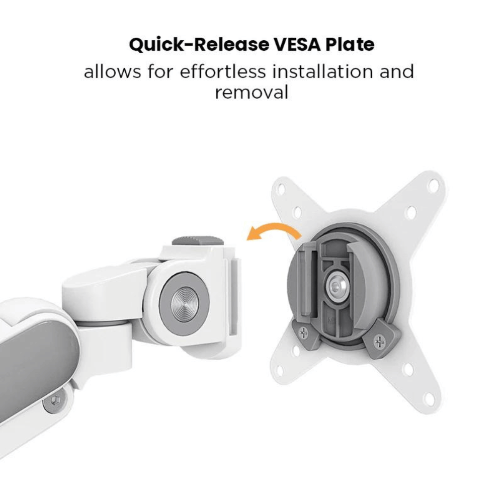 Fabriqué avec des matériaux robustes, le bras est conçu pour supporter deux moniteurs tout en offrant une grande flexibilité. Son mécanisme à ressort intégré assure un mouvement fluide et précis, facilitant les ajustements nécessaires. La conception fine permet de libérer de l’espace sur le bureau tout en maintenant une esthétique moderne.