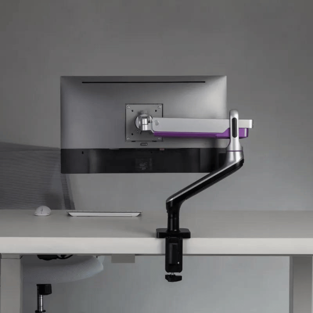 Fabriqué en aluminium, ce bras écran allie légèreté et robustesse. Sa conception soignée permet une installation simple et rapide, tout en garantissant une manipulation fluide. Le mécanisme à ressort intégré assure un ajustement précis du poids, facilitant ainsi le positionnement des moniteurs.