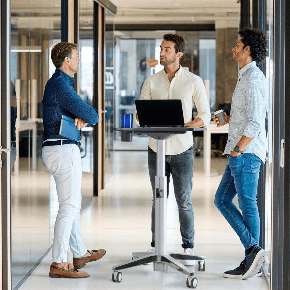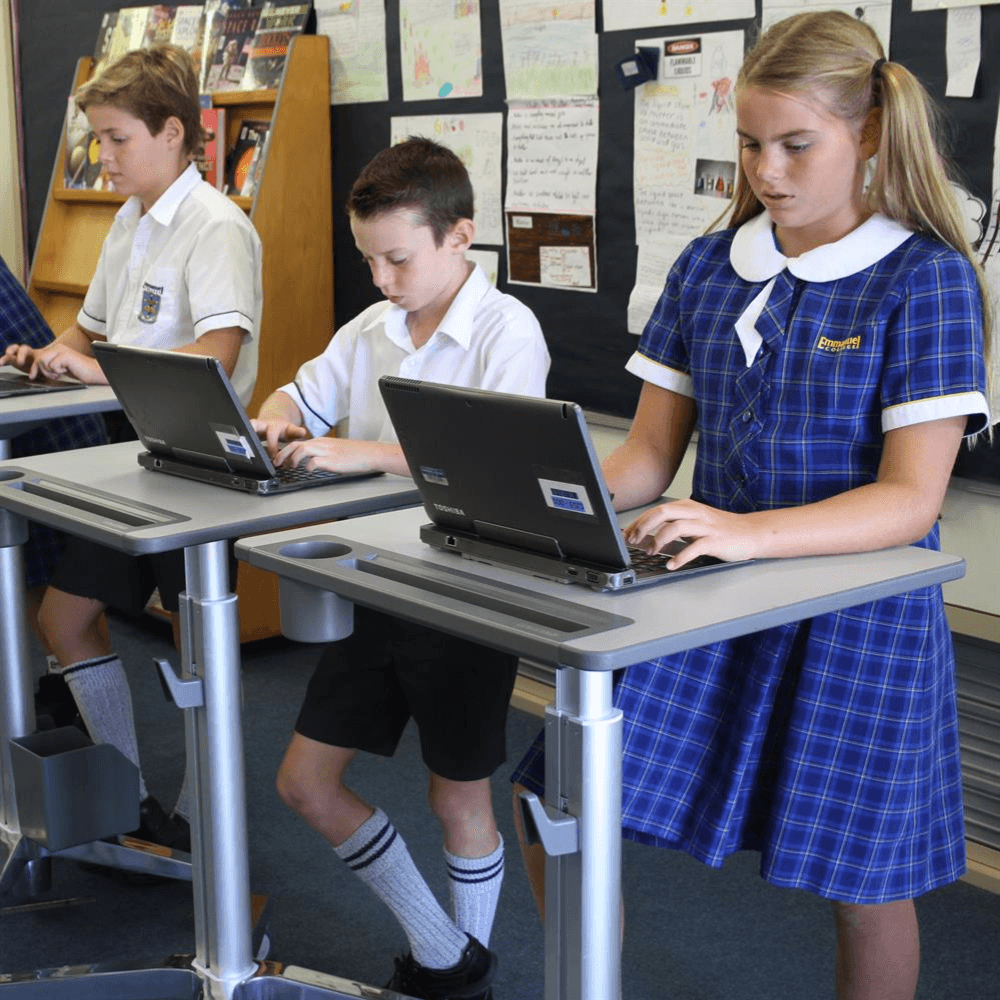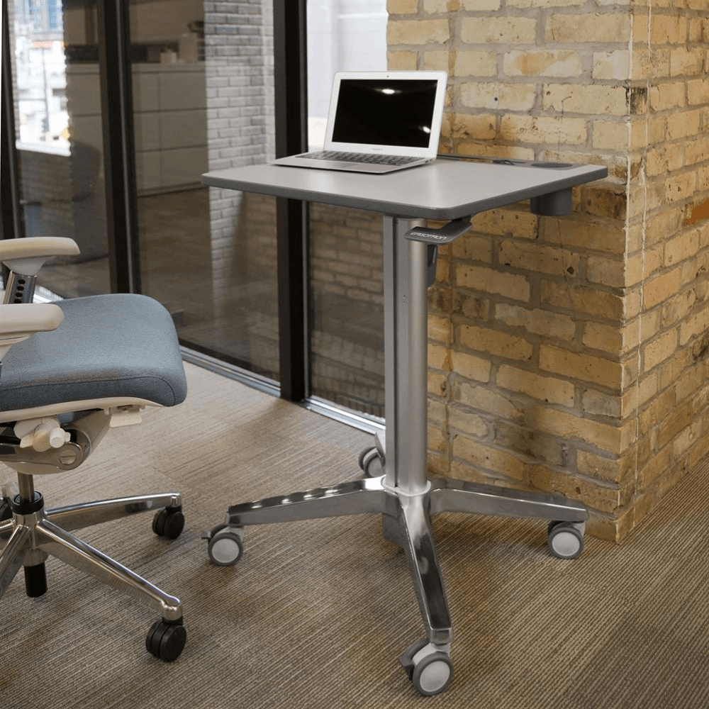 Le bureau assis-debout mobile Ergotron LearnFit est conçu pour favoriser un environnement de travail dynamique et ergonomique.