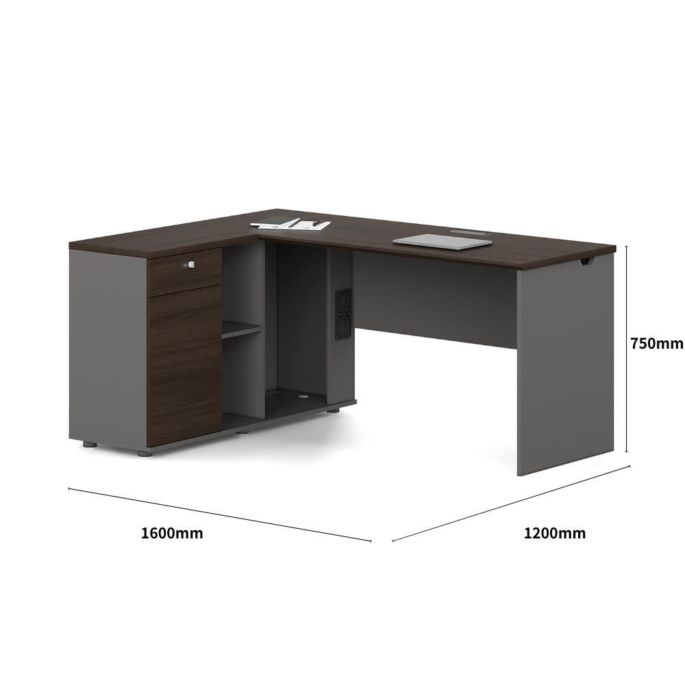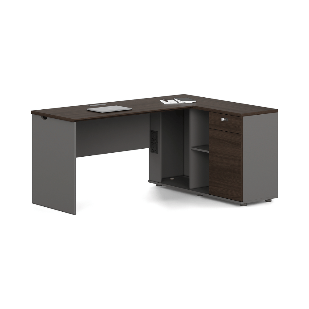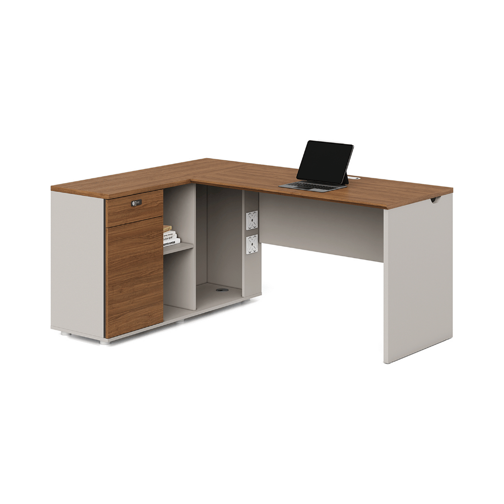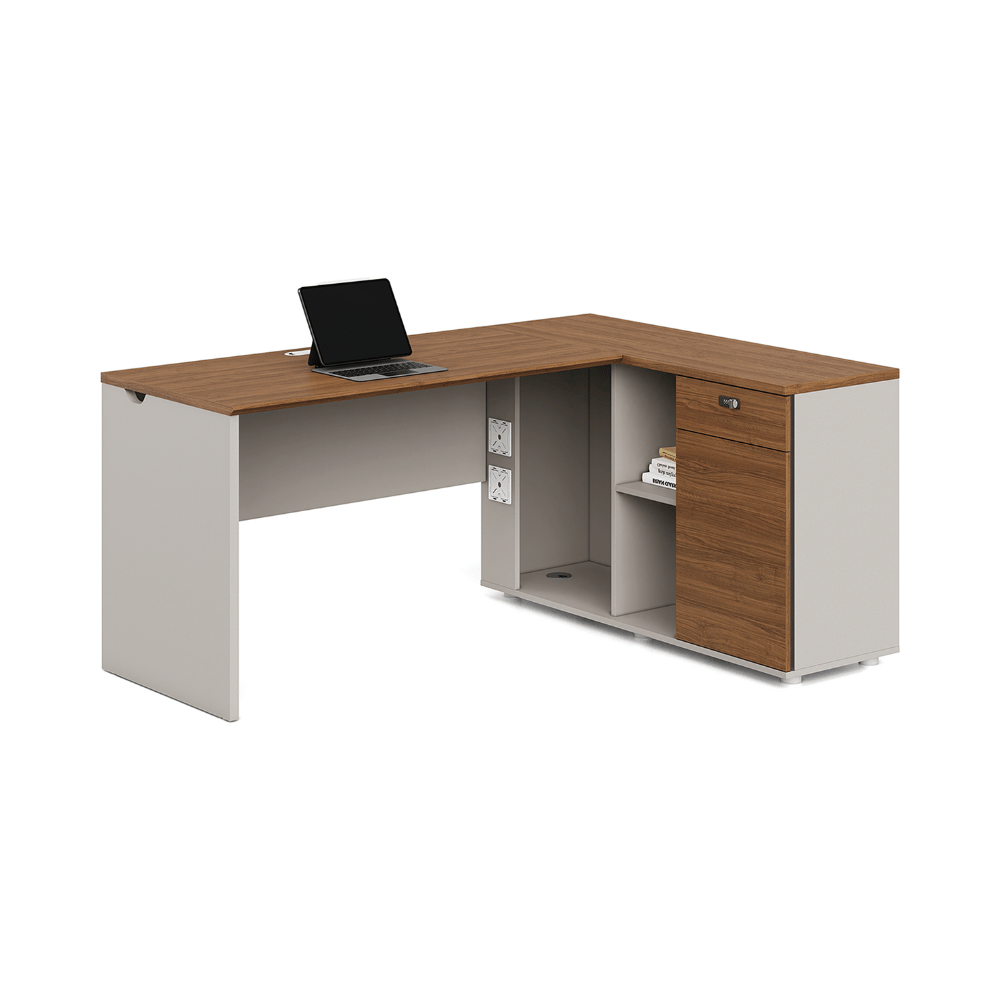 **Bureau Kiruna2-D en bois en L avec caisson**