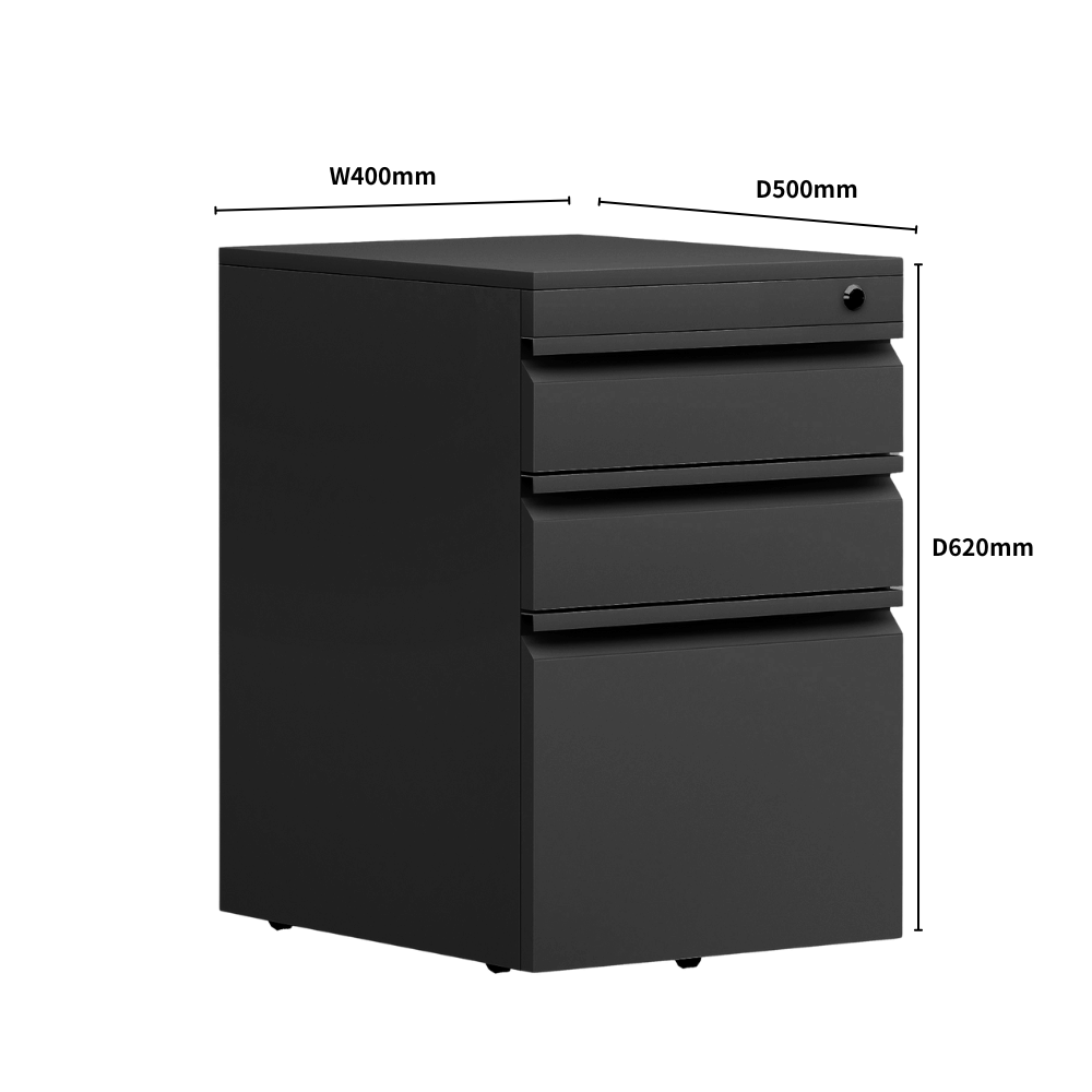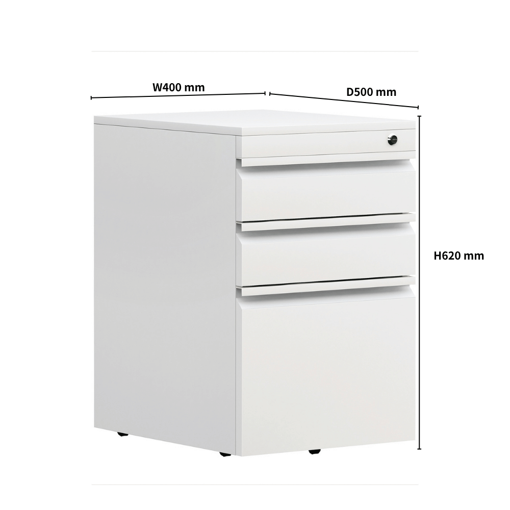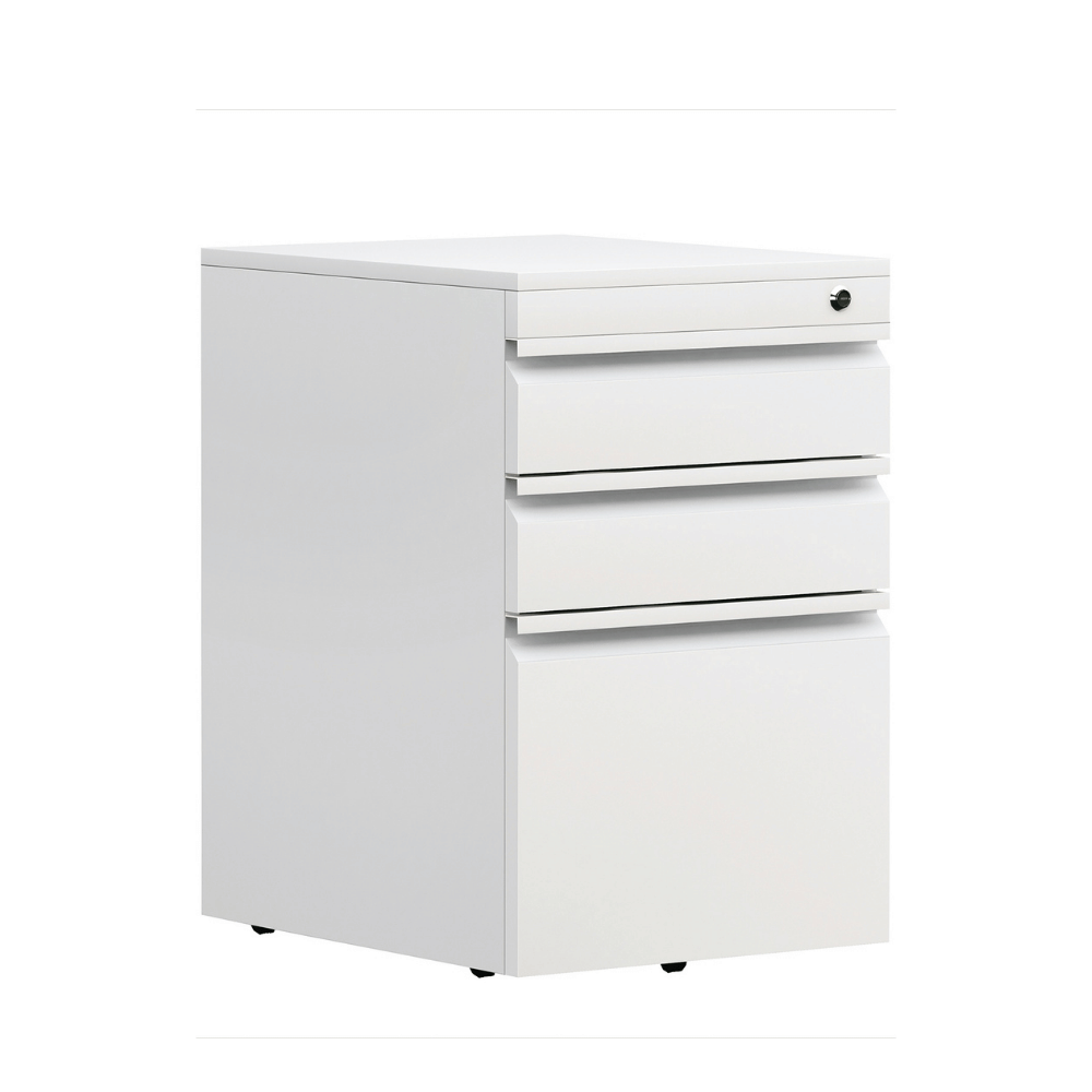 Fabriqué en acier à froid, ce caisson assure une surface lisse et une durabilité accrue. Il est disponible dans une variété de coloris pour le corps et les poignées, permettant une personnalisation selon vos préférences. Les tiroirs sont équipés de glissières silencieuses pour un fonctionnement fluide.