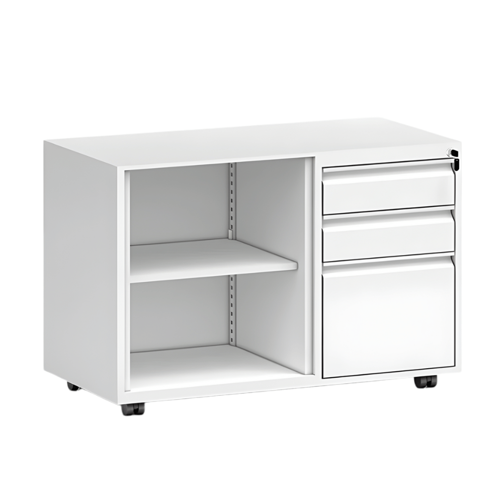 **Caisson mobile latéral Davide-CB en acier à 3 tiroirs avec étagère ouverte**