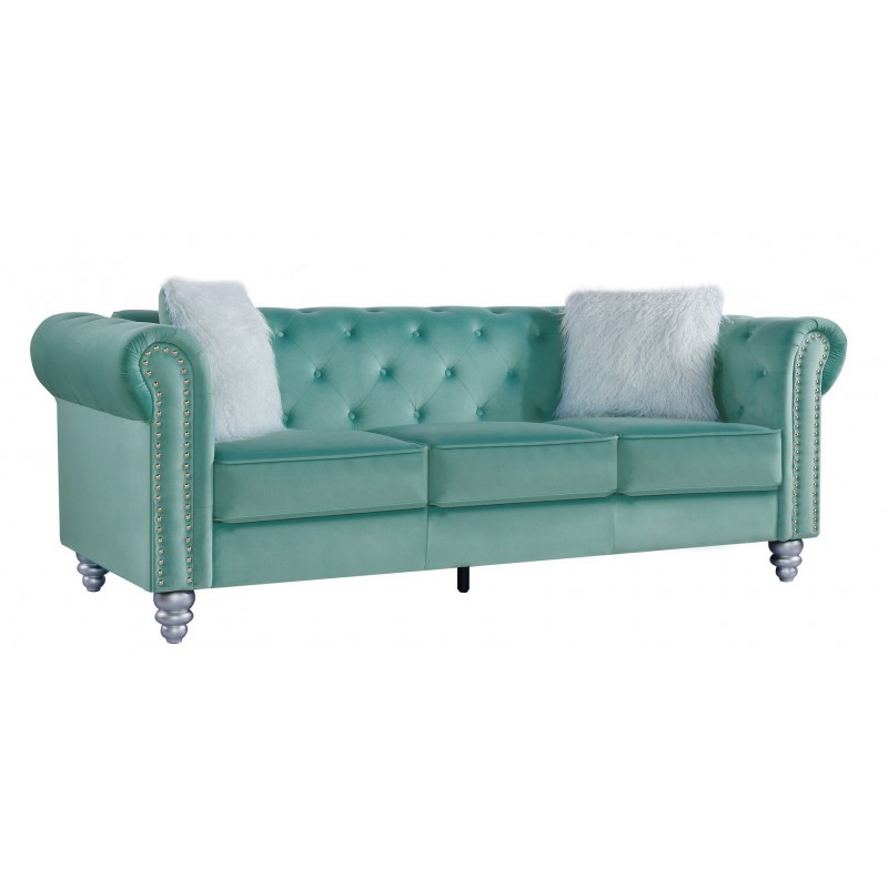 – Revêtement en velours couleur vert d’eau, apportant une touche élégante et contemporaine