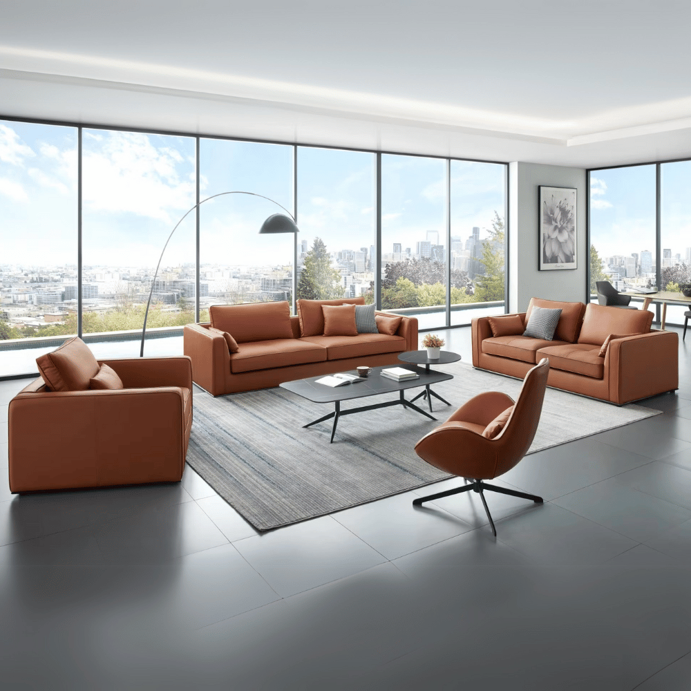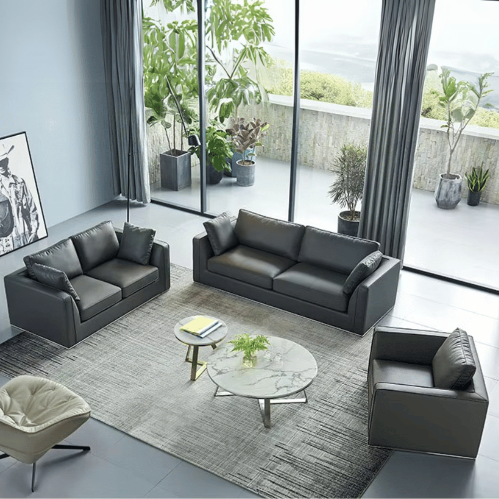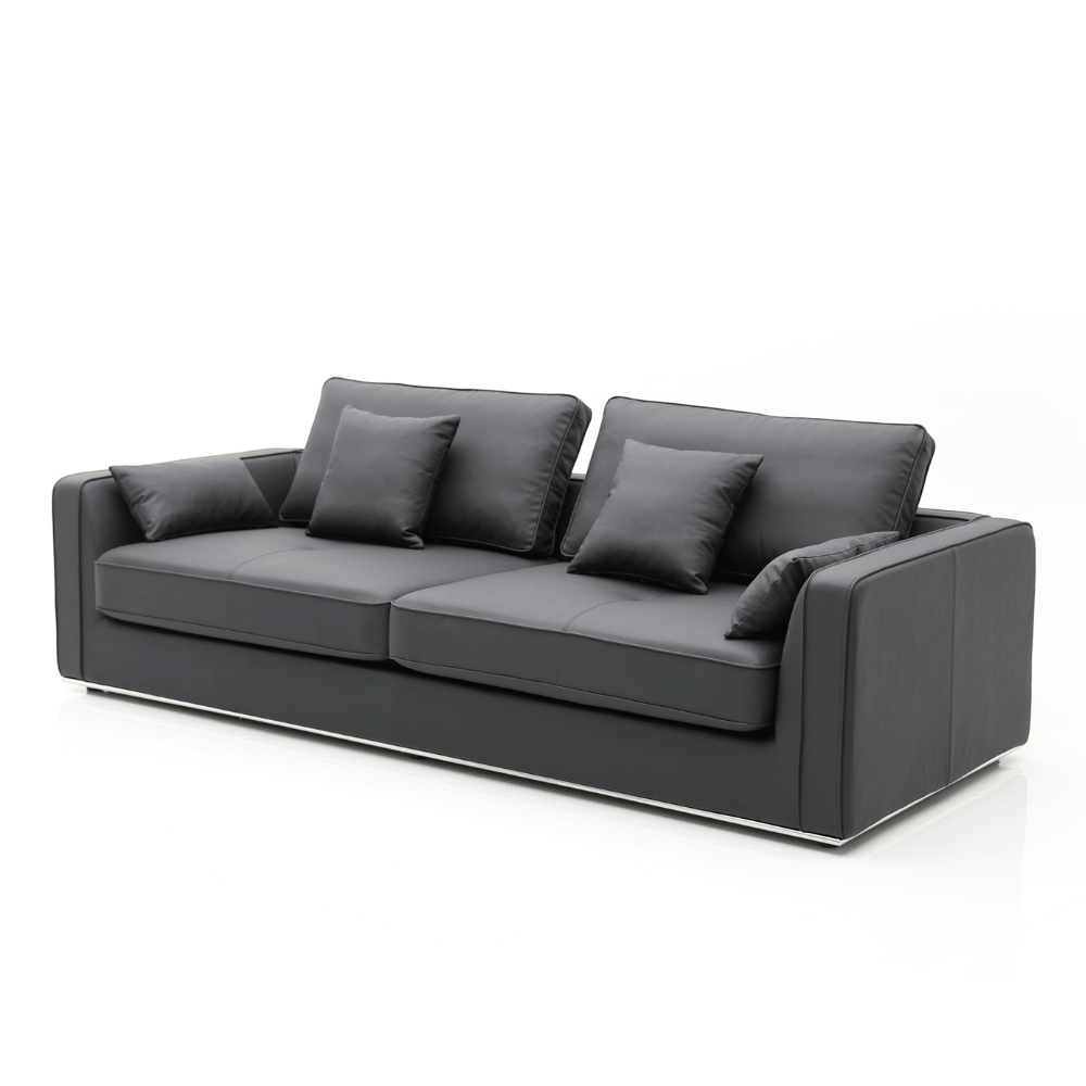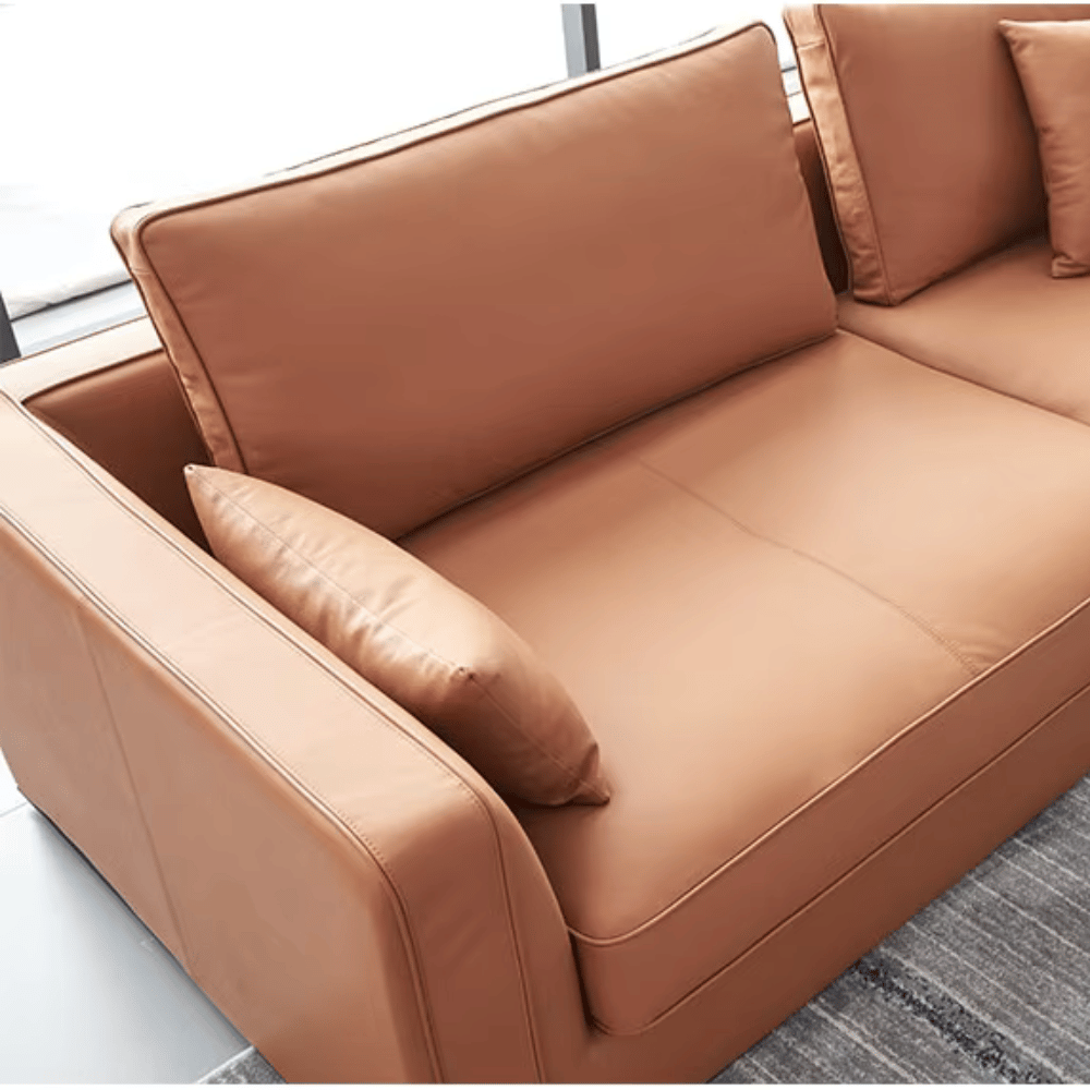 Le canapé Igar présente une finition soignée, avec un cuir de qualité qui offre un toucher agréable et une belle tenue dans le temps. Sa conception permet de maintenir un aspect neuf même après une utilisation intensive, tout en étant facile à entretenir.