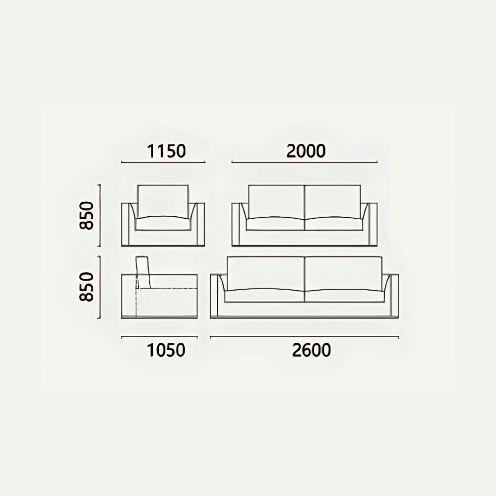 Le canapé repose sur une structure en bois de mélèze importé, assurant une stabilité et une durabilité à long terme. Le rembourrage en mousse polyuréthane offre un confort supérieur sans déformation, même après une utilisation prolongée. Les pieds en métal peint ajoutent une touche moderne tout en garantissant une bonne résistance.