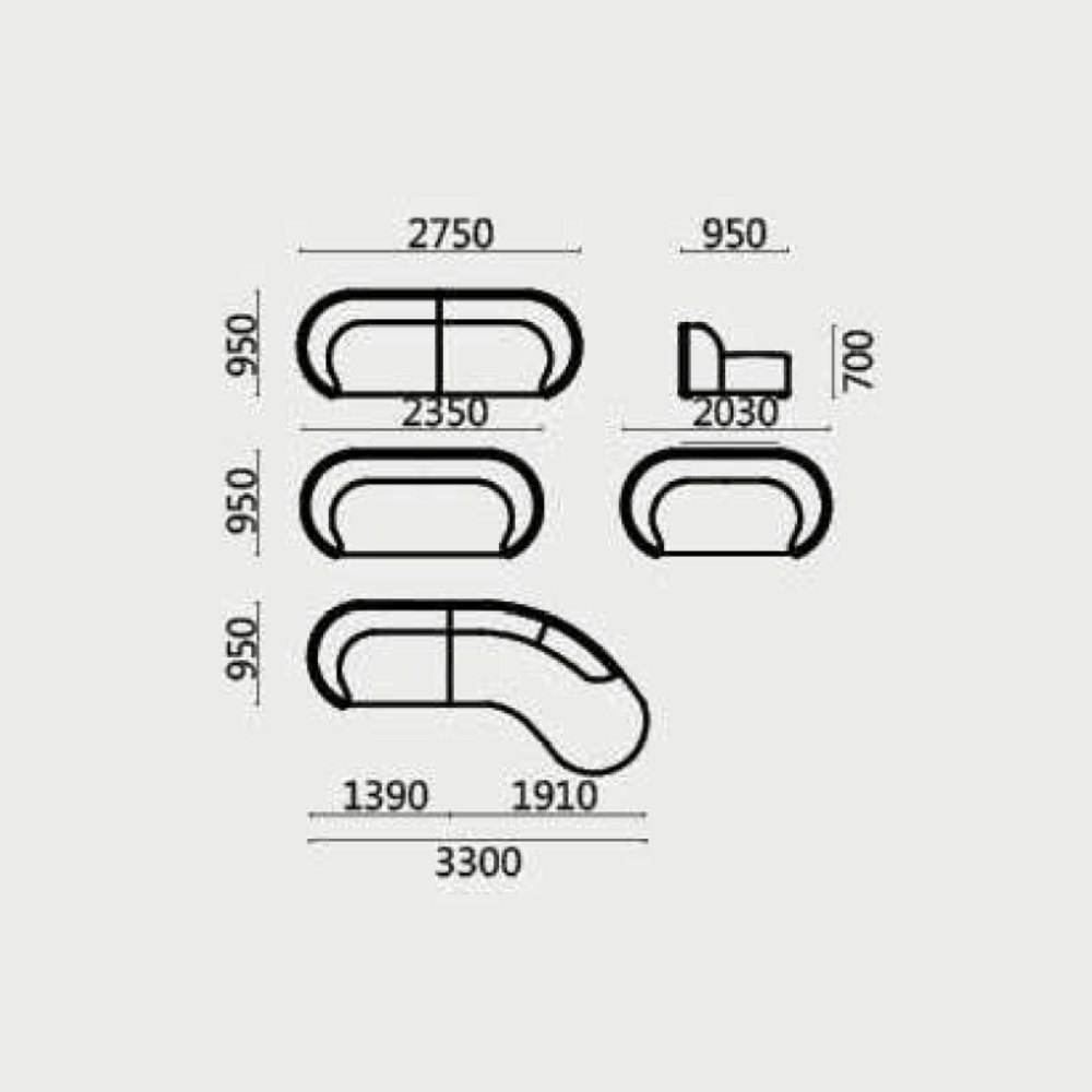 **Canapé lounge Oval une place courbe**