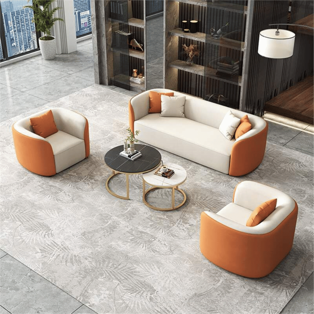 Un canapé lounge au design courbe, idéal pour les espaces professionnels.