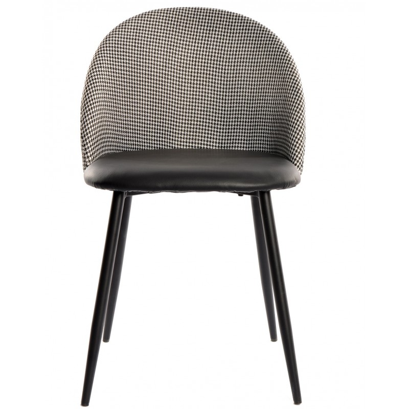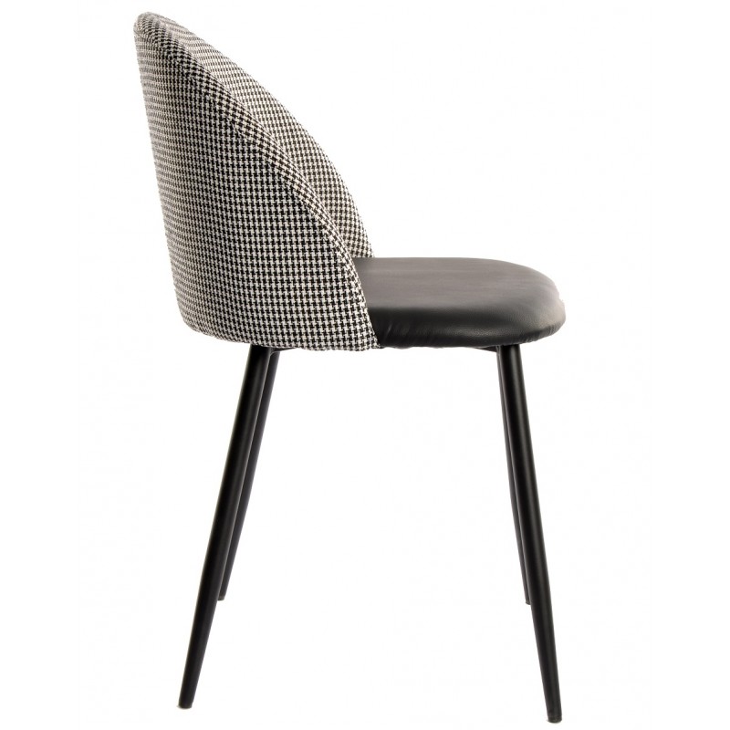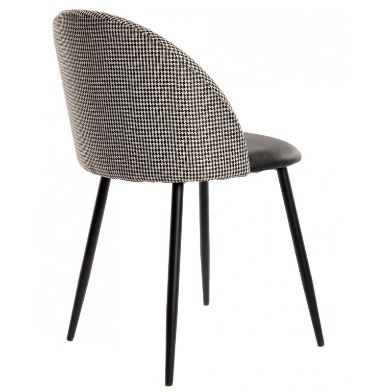 La structure repose sur un métal noir assurant robustesse et stabilité. L’assise et le dossier combinent un tissu pied-de-poule et un similicuir noir, apportant un contraste visuel marqué. Les matériaux sélectionnés garantissent une bonne résistance à l’usage intensif.