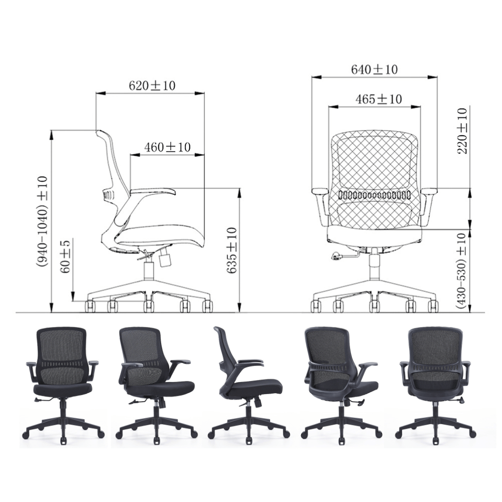 **Chaise de bureau Skane ergonomique avec accoudoirs relevables – dossier mi-haut**