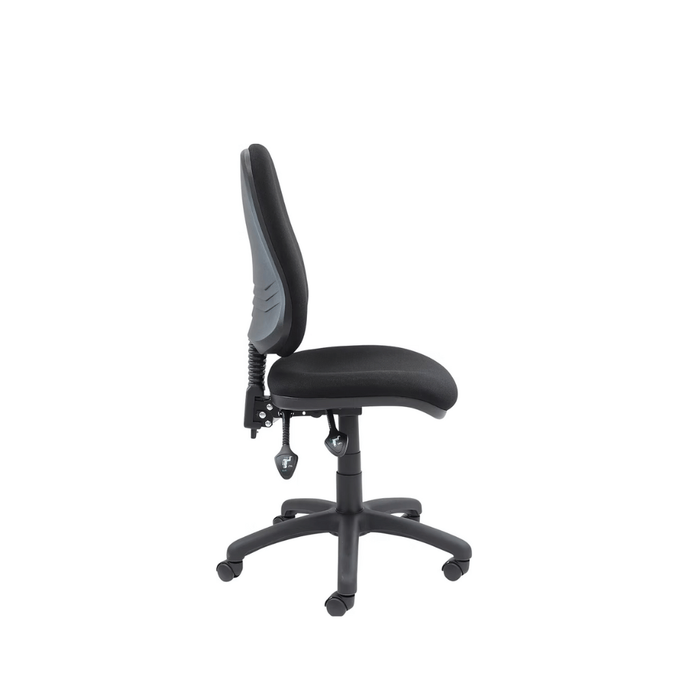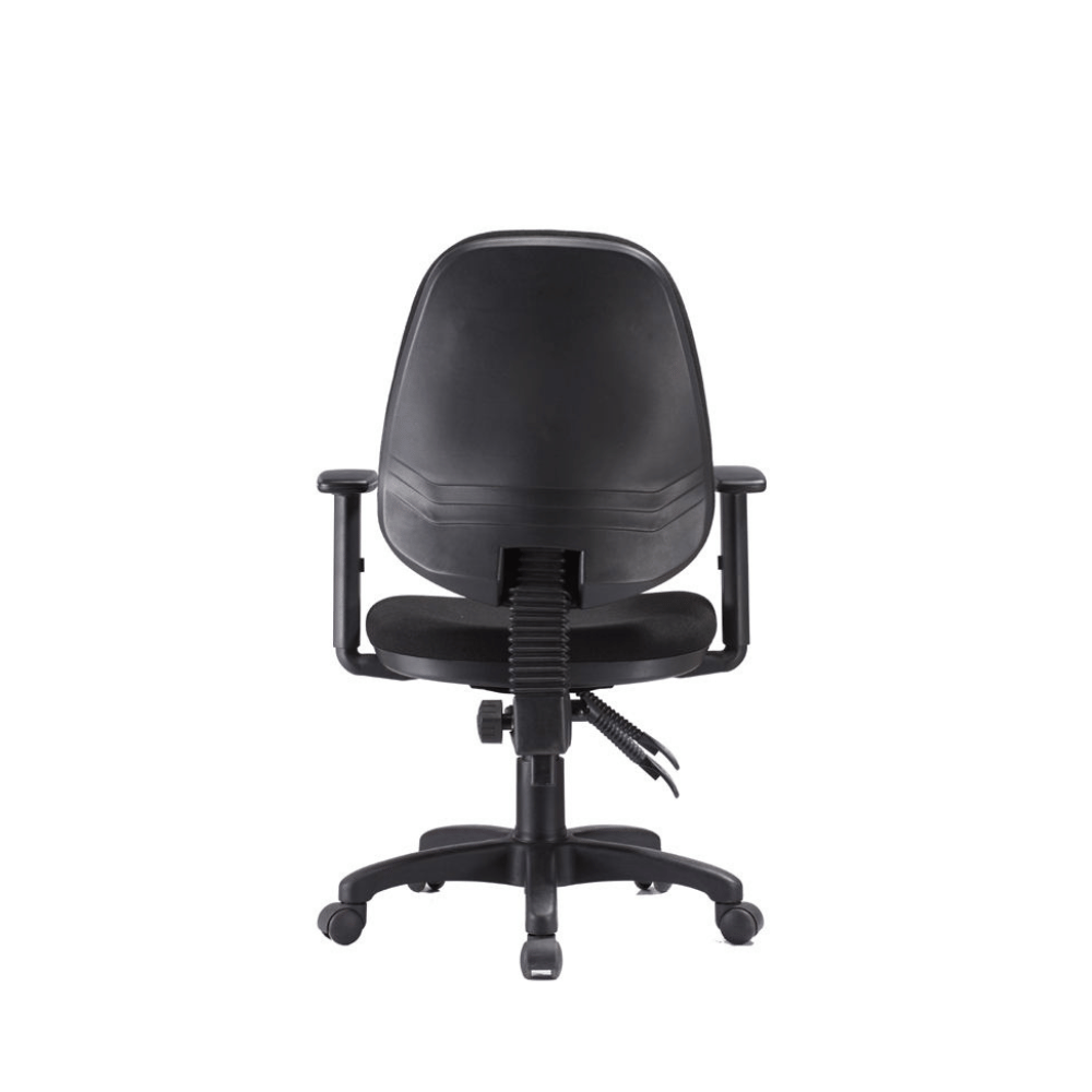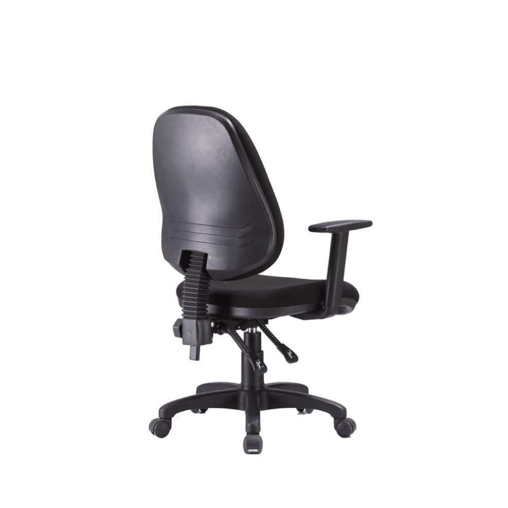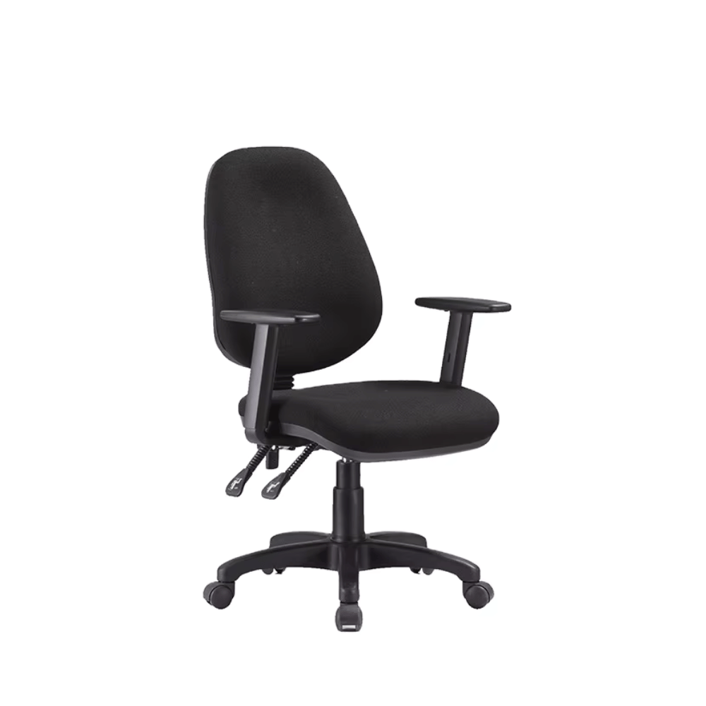 La chaise est dotée d’un revêtement en tissu respirant, garantissant une circulation d’air efficace. Sa construction robuste assure une utilisation quotidienne dans des environnements de travail animés. Le dossier mi-haut offre un soutien lombaire essentiel pour un confort prolongé.