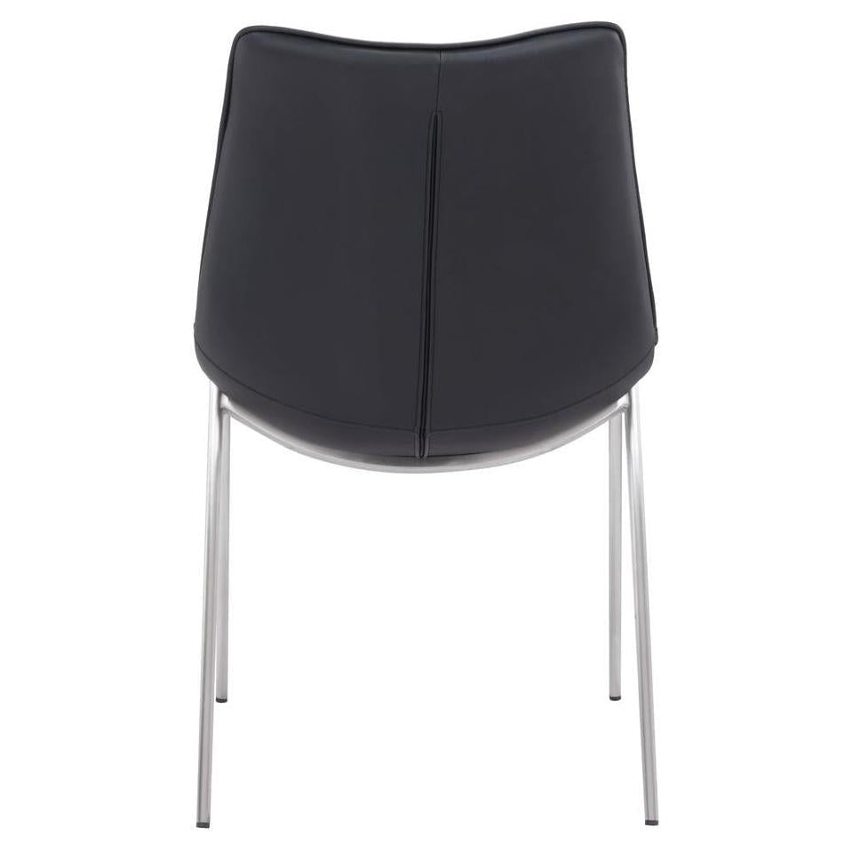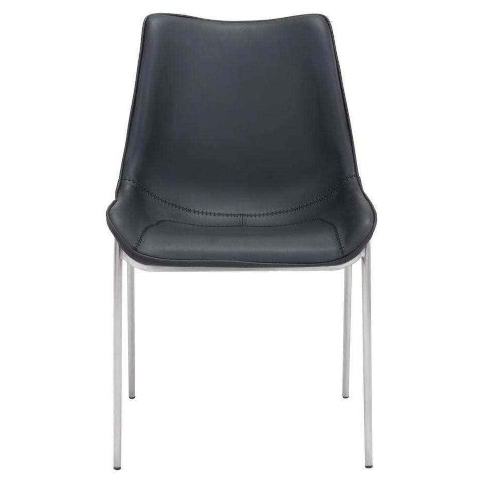 • Structure / matériaux : Fabriquée en faux cuir noir avec des pieds en acier inoxydable brossé,