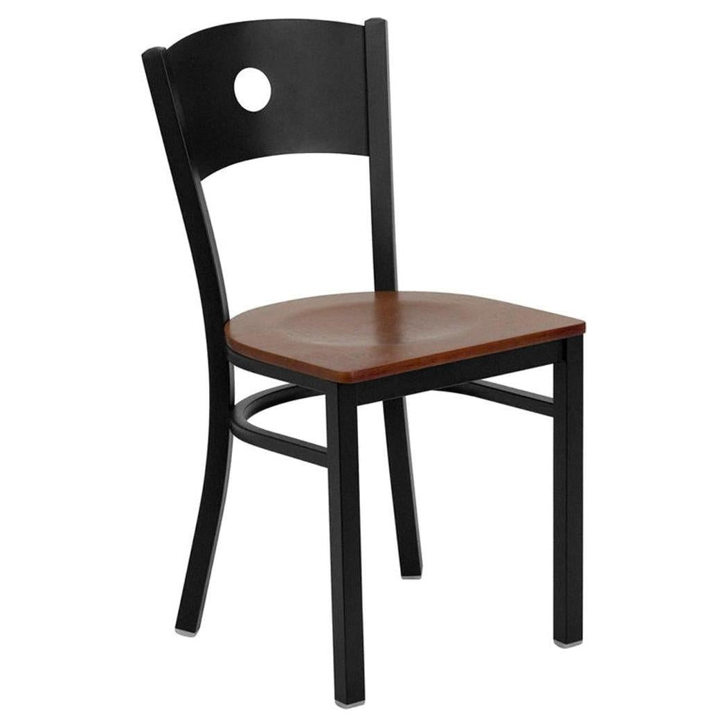 Cette chaise en métal est conçue pour répondre aux besoins des établissements de restauration,