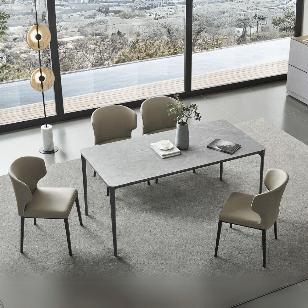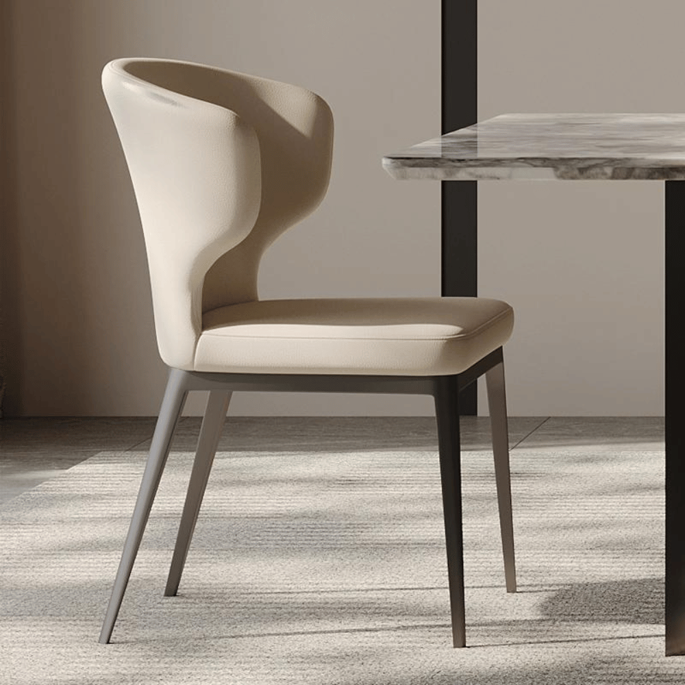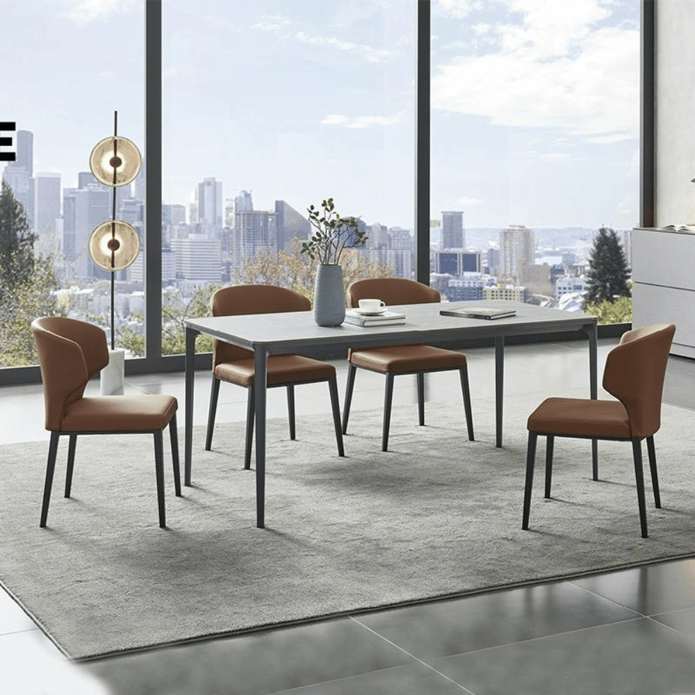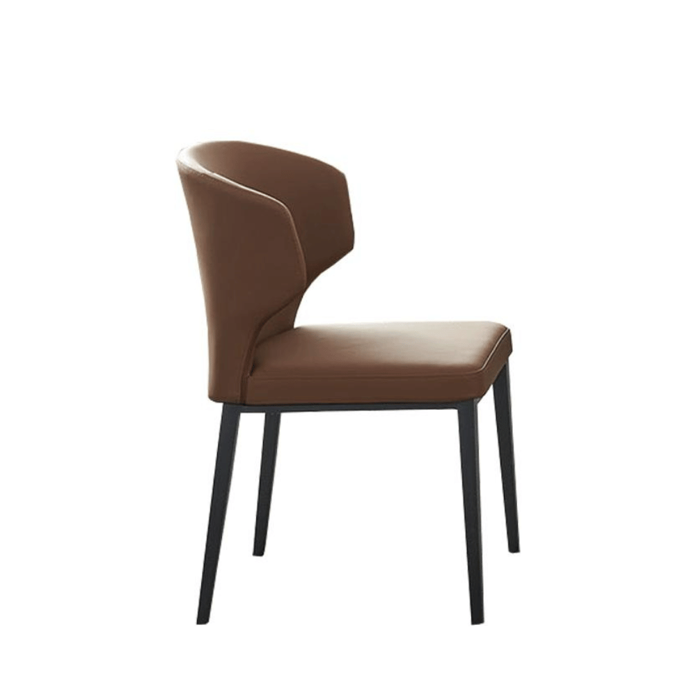La chaise Amed repose sur une structure en acier, garantissant stabilité et durabilité. Son assise et son dossier sont rembourrés avec une mousse polyuréthane de haute densité, offrant un soutien agréable. Le revêtement en cuir et tissu doux assure un toucher agréable et une esthétique raffinée.