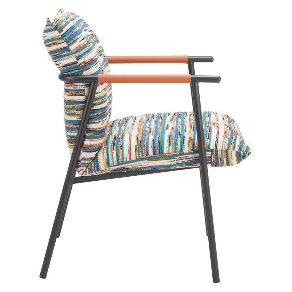• Structure / matériaux : Sa conception est réalisée en tissu texturé 100 % polyester, en simili cuir 100 % polyuréthane et en acier traité par poudre,