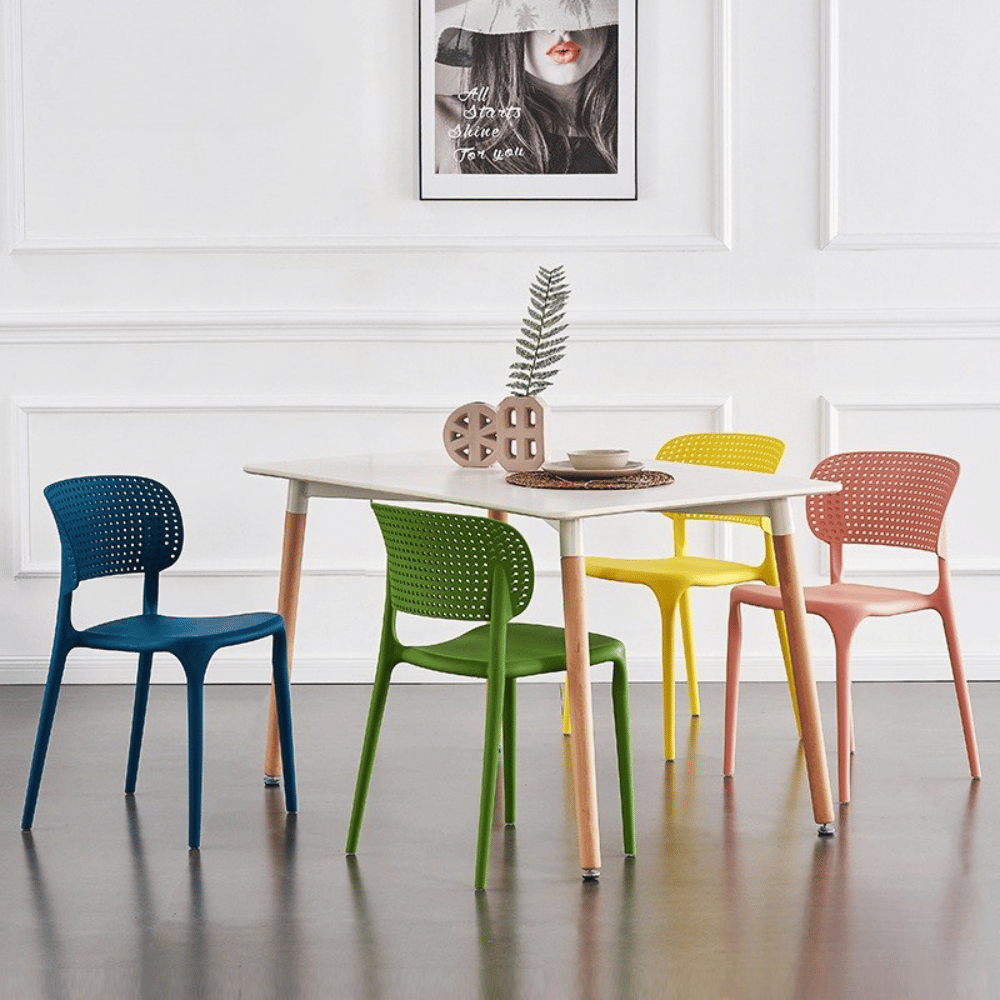 **Chaise de salle à manger Rose empilable en plastique – dossier ajouré**