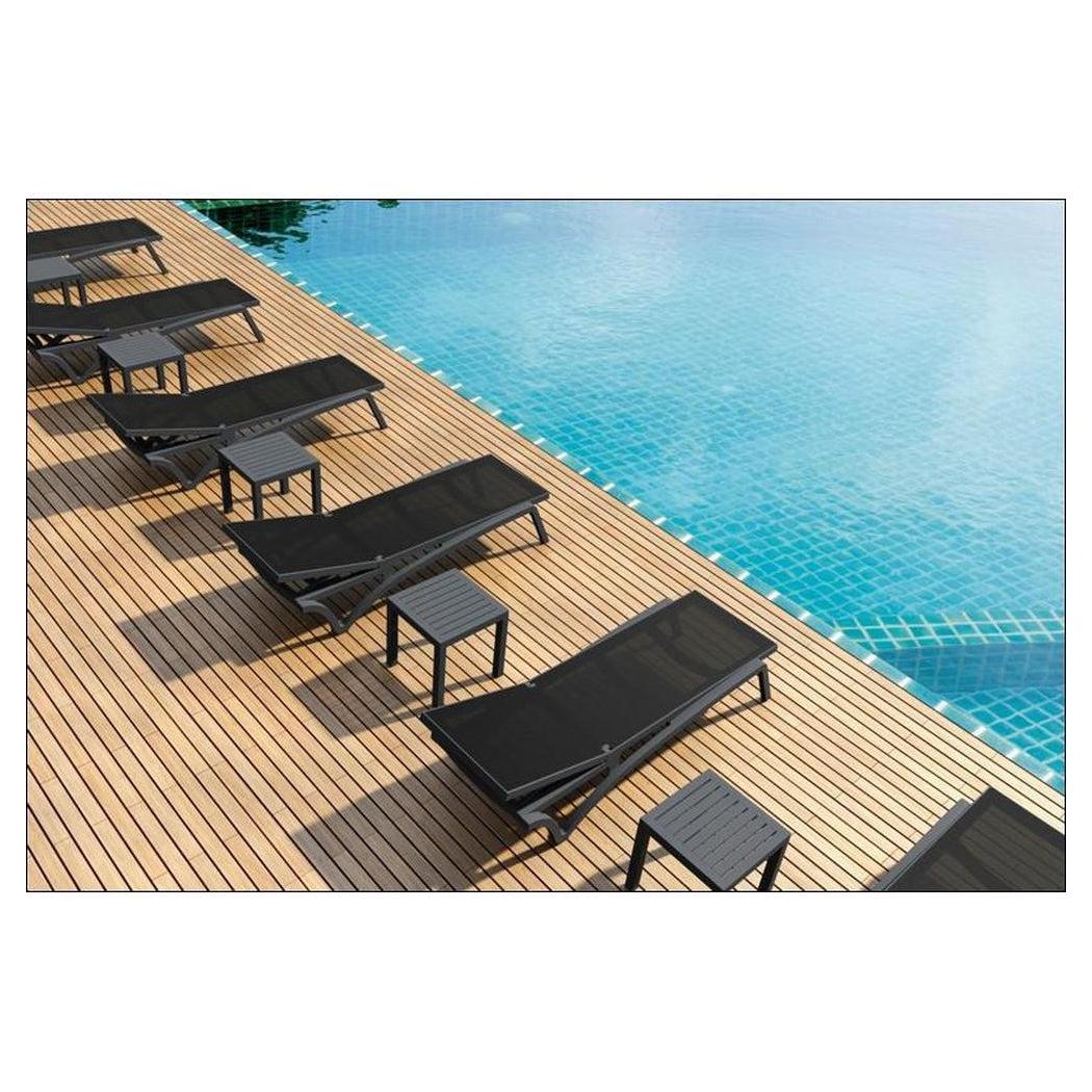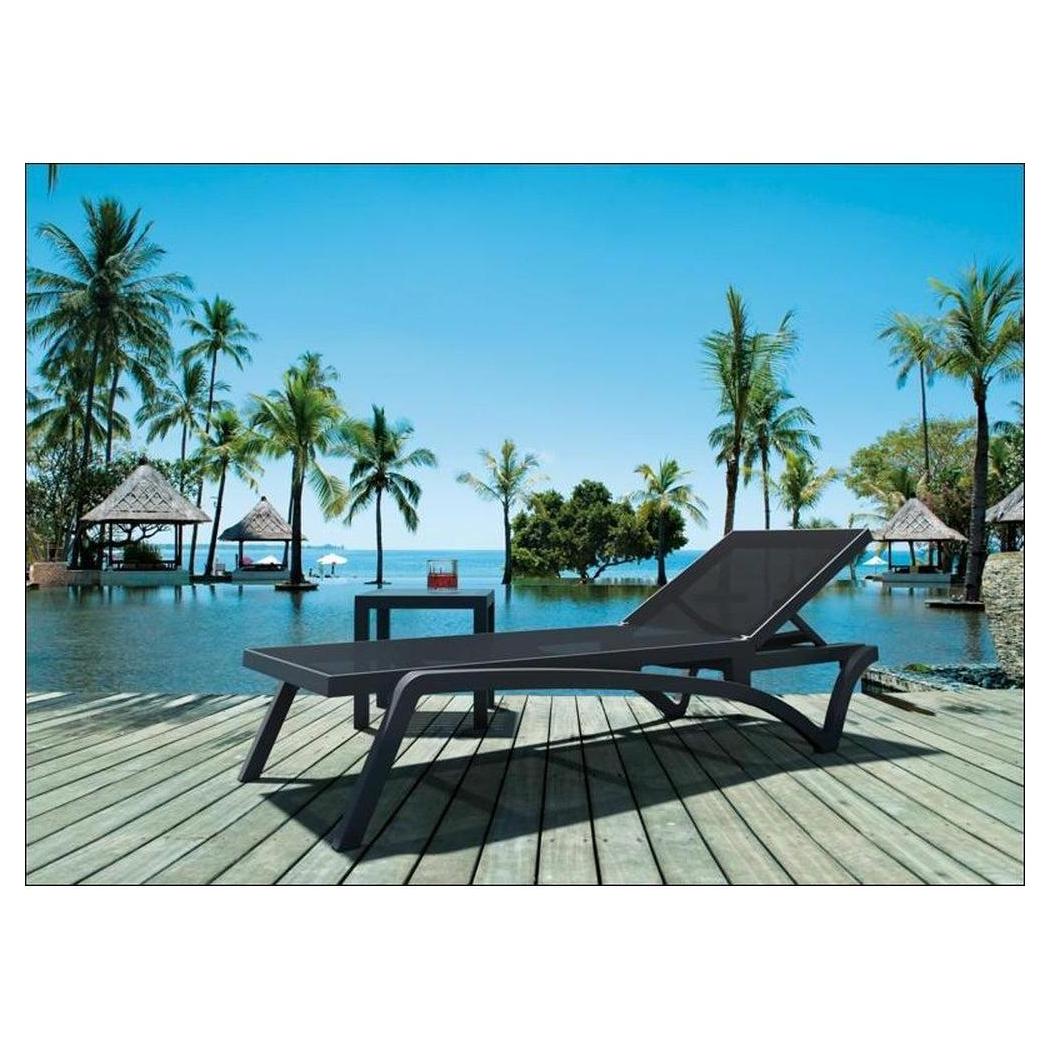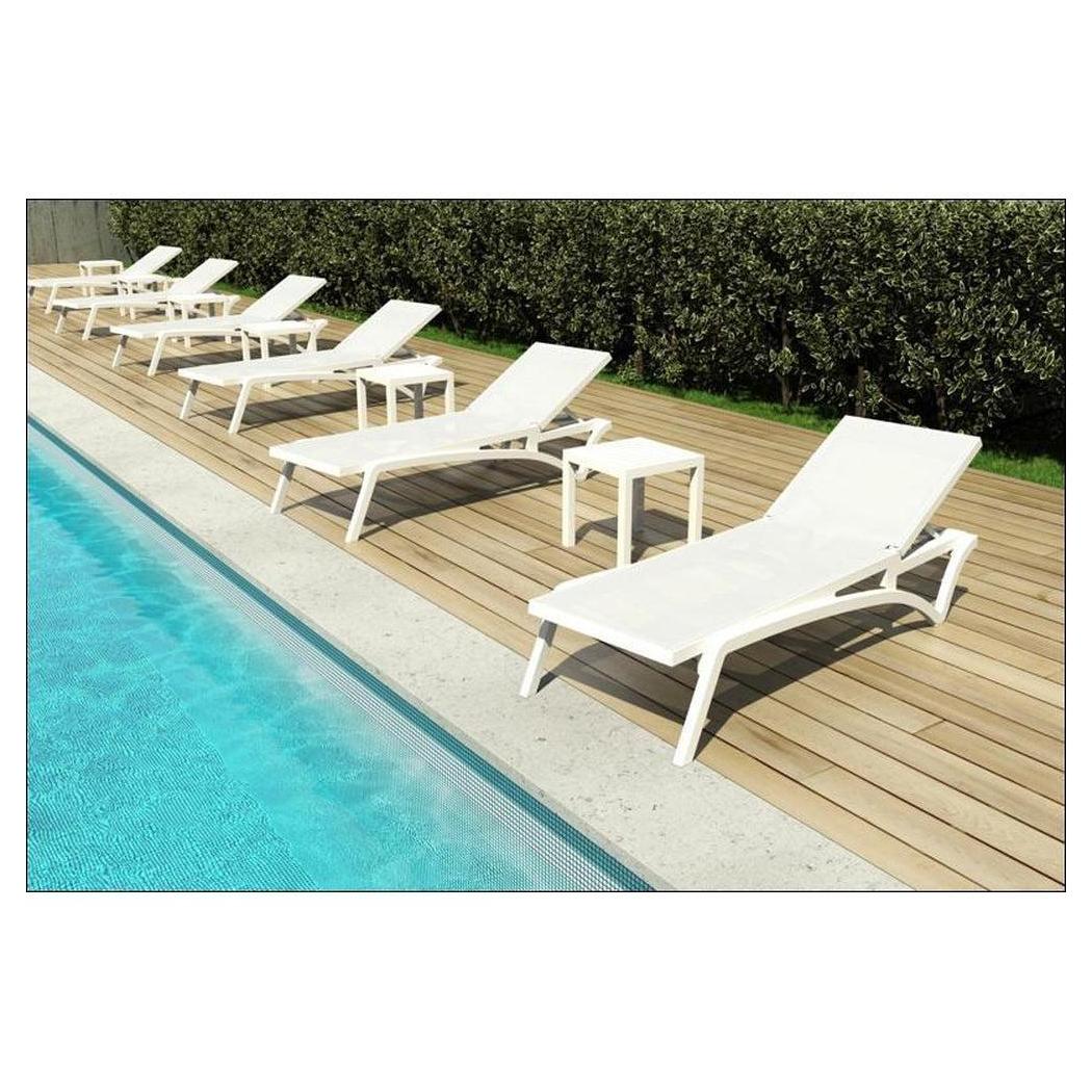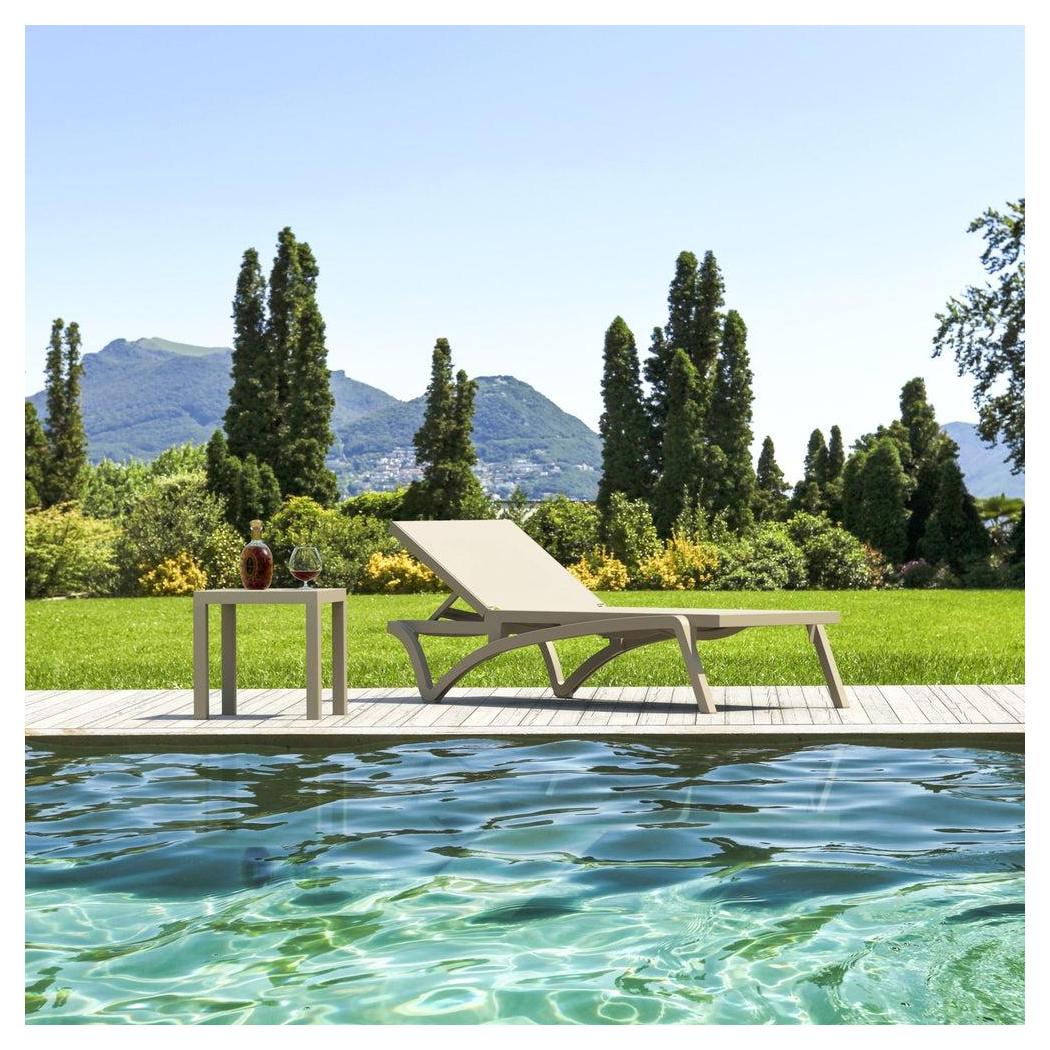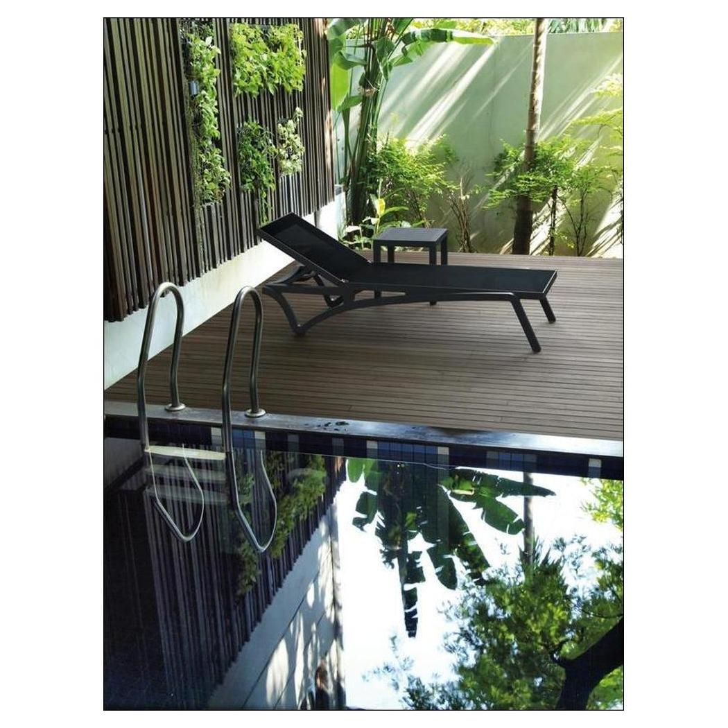 Cette chaise longue extérieure est conçue pour un usage commercial, offrant confort et praticité,