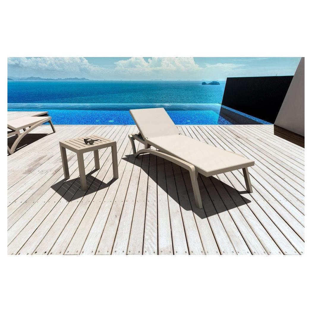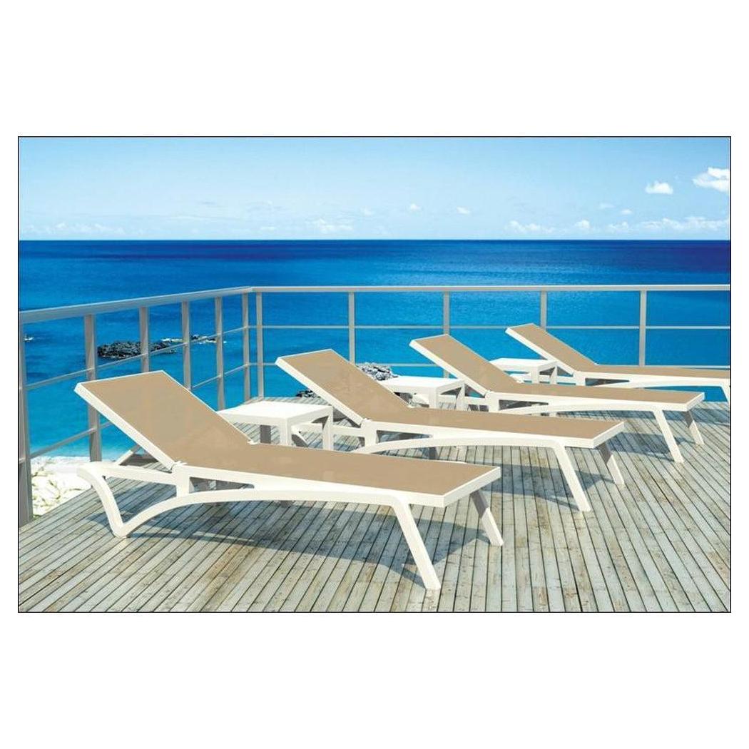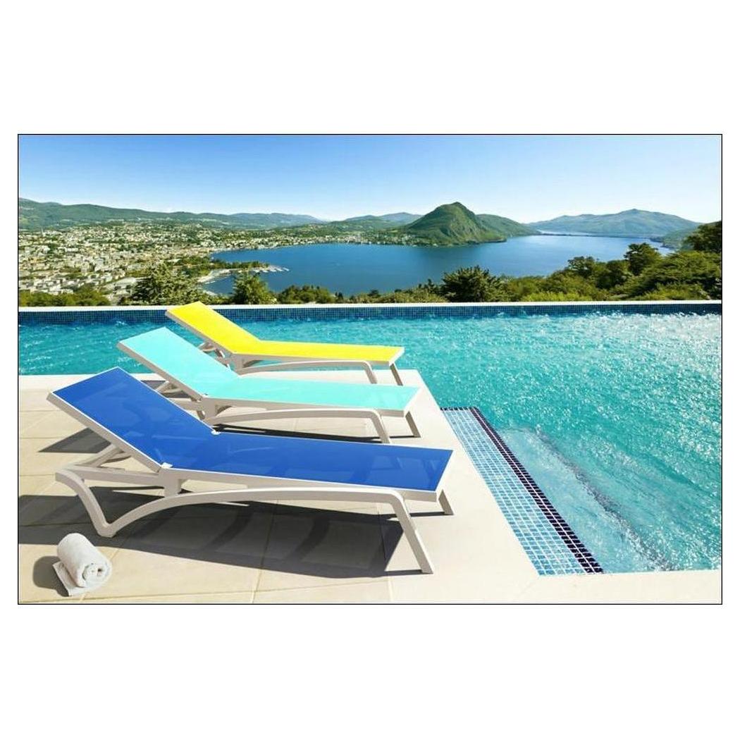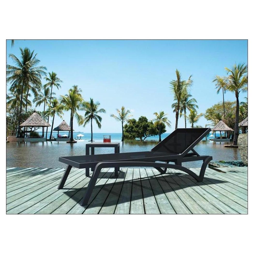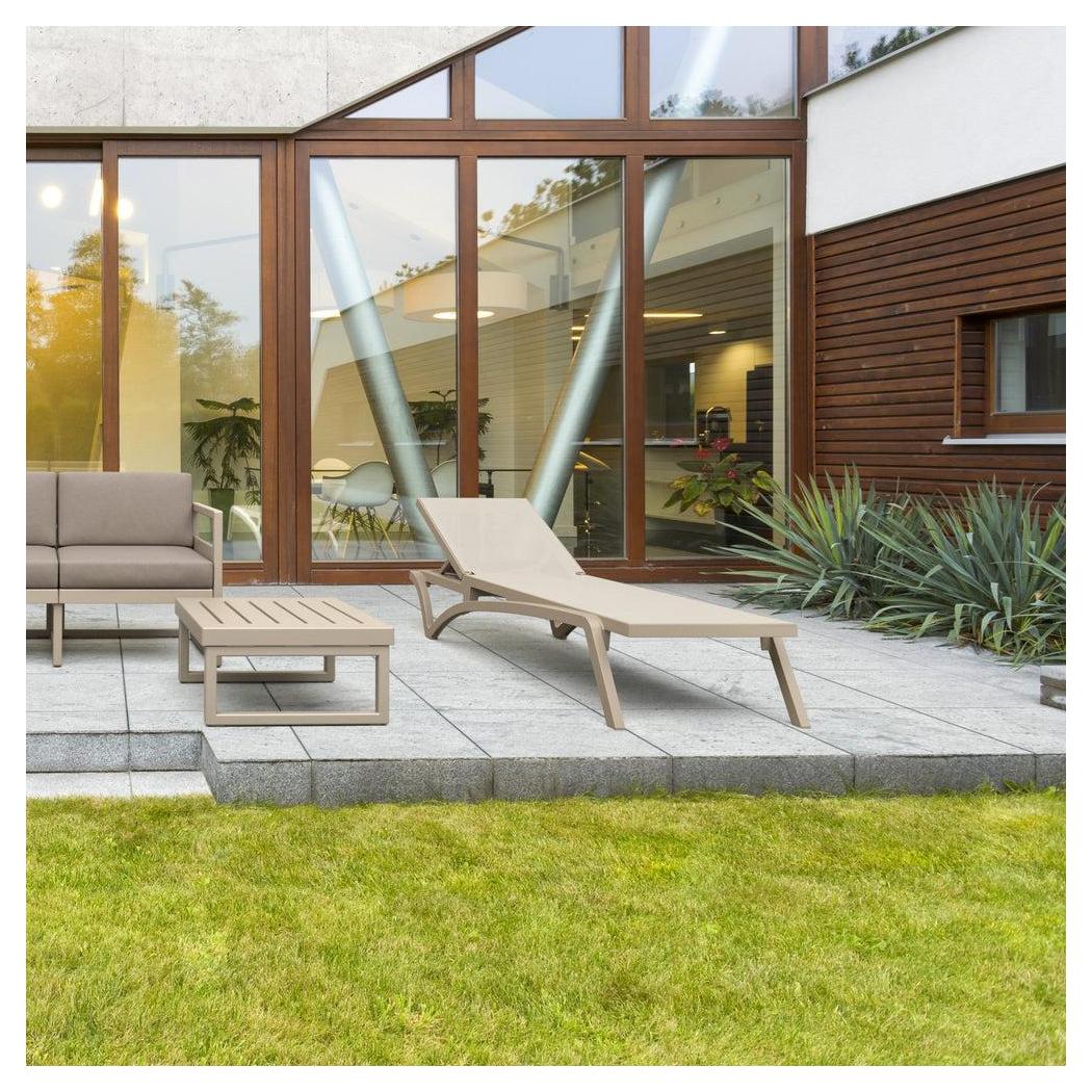 Cette chaise longue extérieure est conçue pour un usage commercial, offrant confort et praticité,