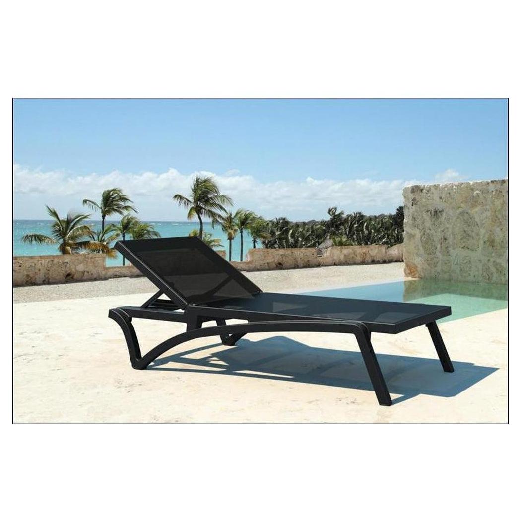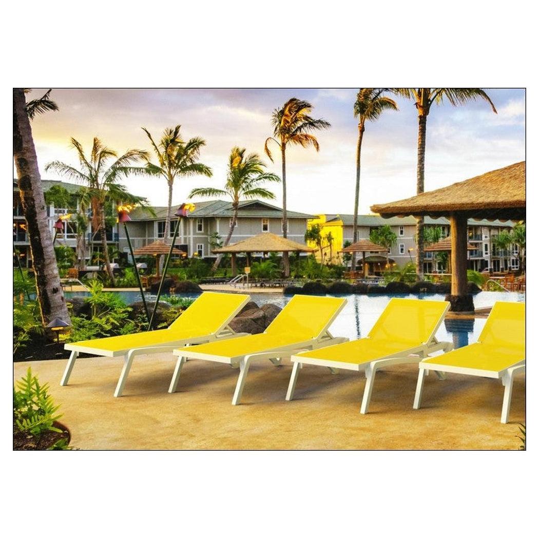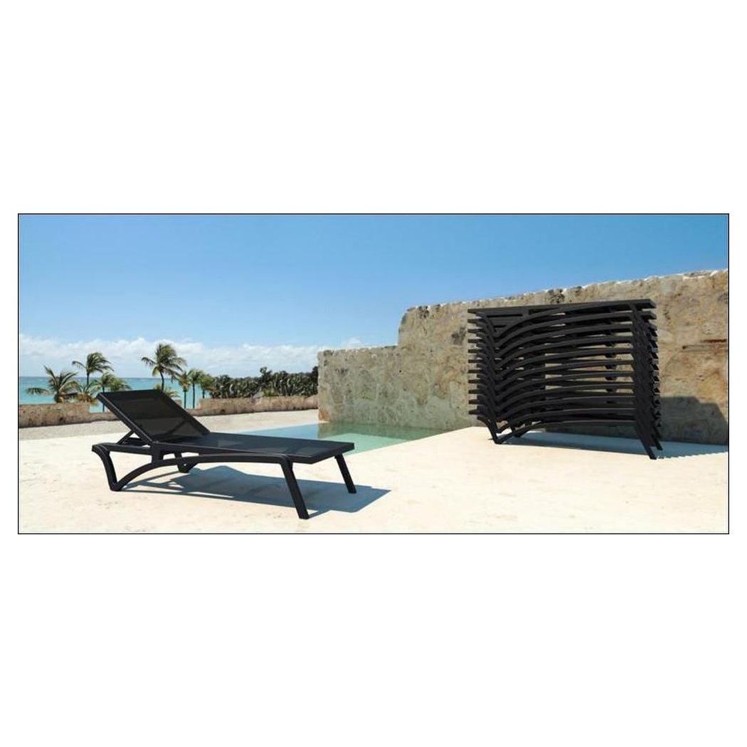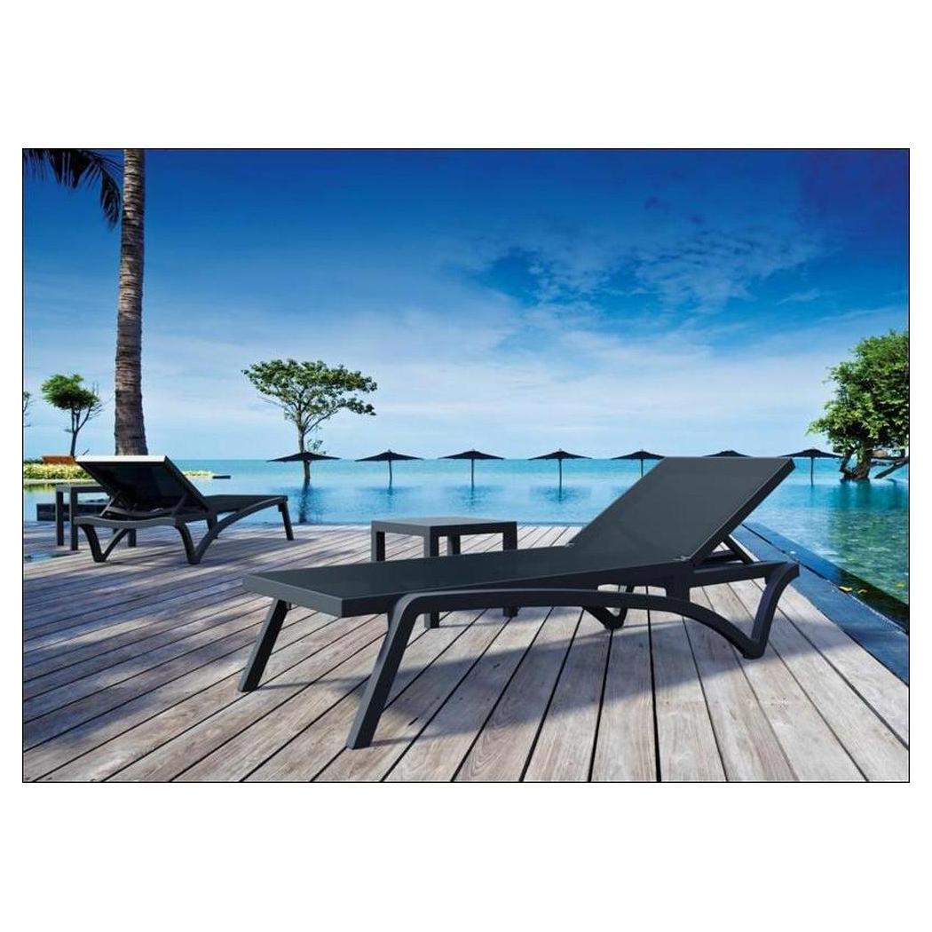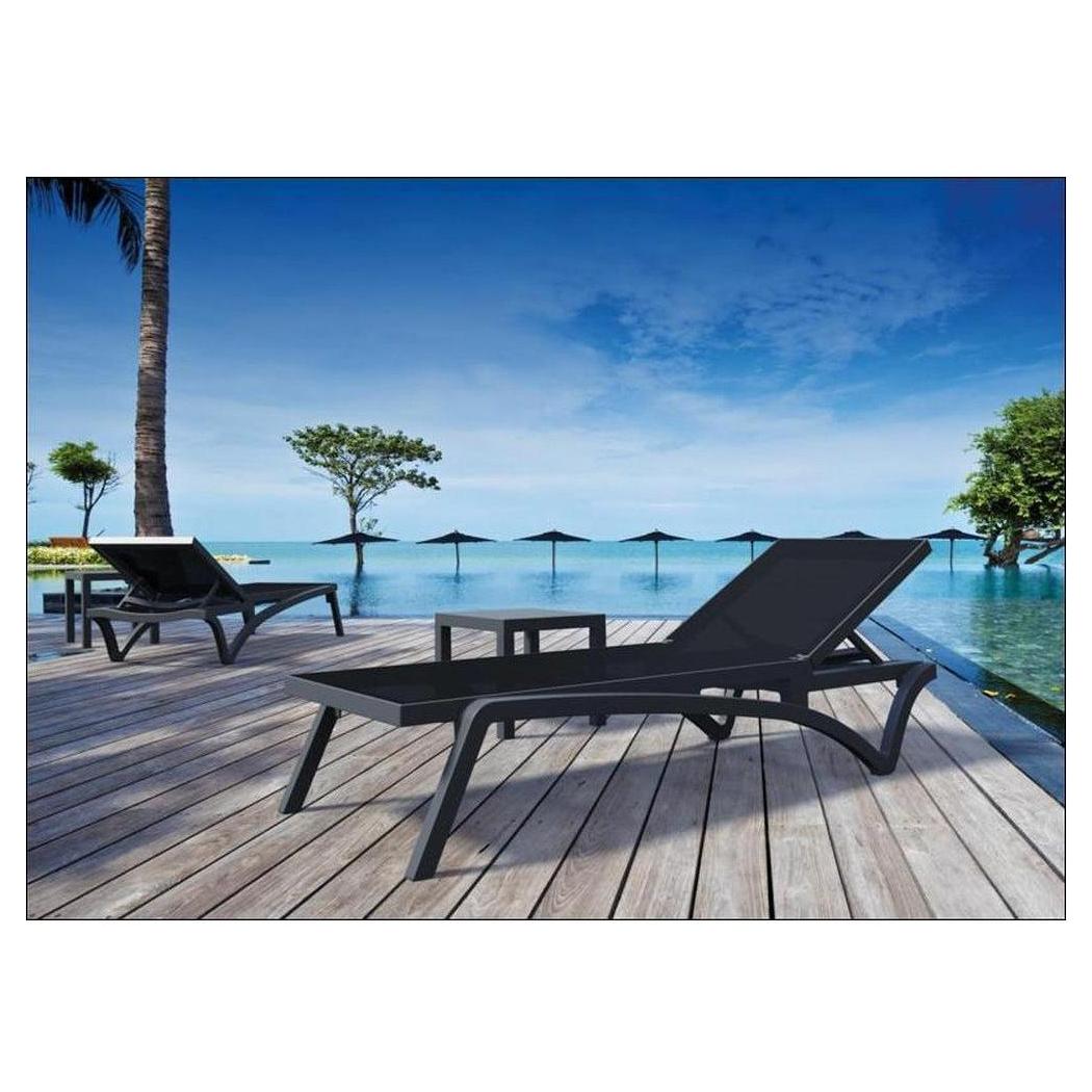 Cette chaise longue extérieure est conçue pour un usage commercial, offrant confort et praticité,