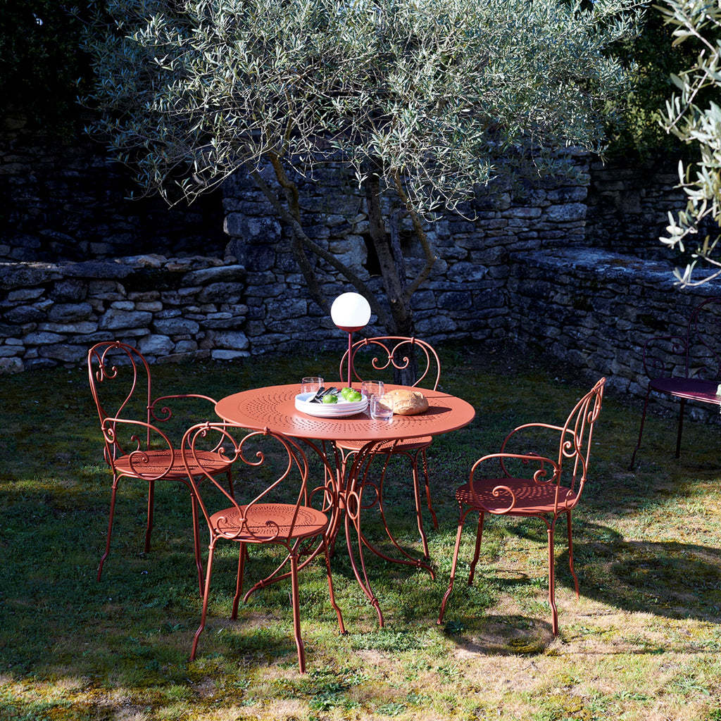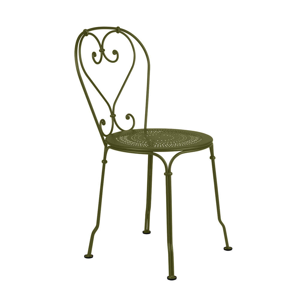 Conçue en métal, cette chaise assure une robustesse adaptée aux environnements extérieurs.