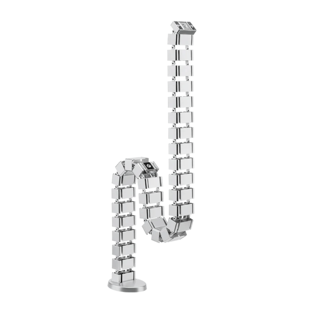 La colonne est dotée d’une structure modulaire en vertèbres, permettant d’ajouter ou de retirer des sections selon les besoins. Sa base lestée avec un bloc en fer assure une stabilité optimale. L’attache magnétique solide maintient les câbles en place, offrant une solution pratique et esthétique.