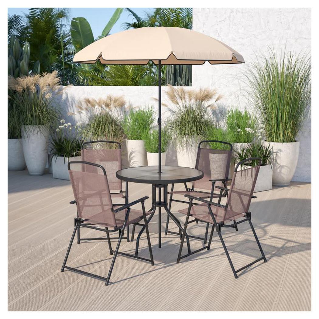 • Points techniques clés : La table dispose d’un trou pour parasol et peut supporter un poids de 74,84 kg, tandis que chaque chaise a une capacité de charge de 129,73 kg,
