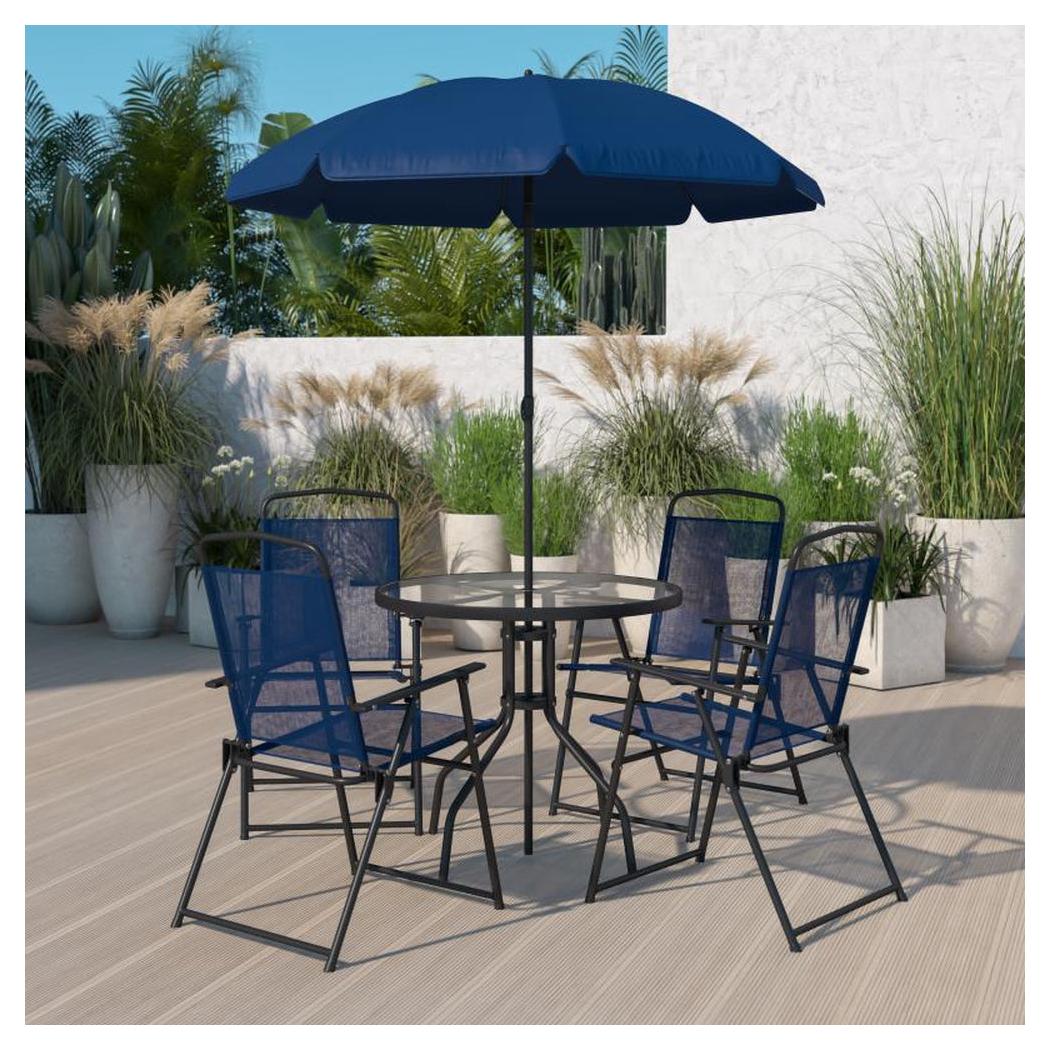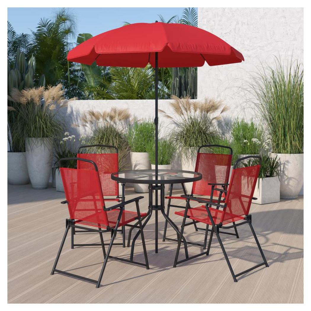 • Structure / matériaux : Comprend une table en verre avec un cadre en acier traité par poudre et quatre chaises pliantes,