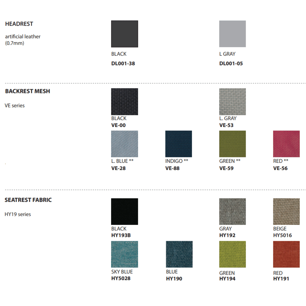 Le fauteuil est doté d’une structure robuste, avec un dossier en maille WINTEX qui assure une excellente élasticité et une bonne circulation de l’air. Le siège est recouvert d’un tissu confortable, garantissant une assise agréable. Les accoudoirs et le repose-tête sont ajustables, permettant une personnalisation selon les besoins de l’utilisateur.