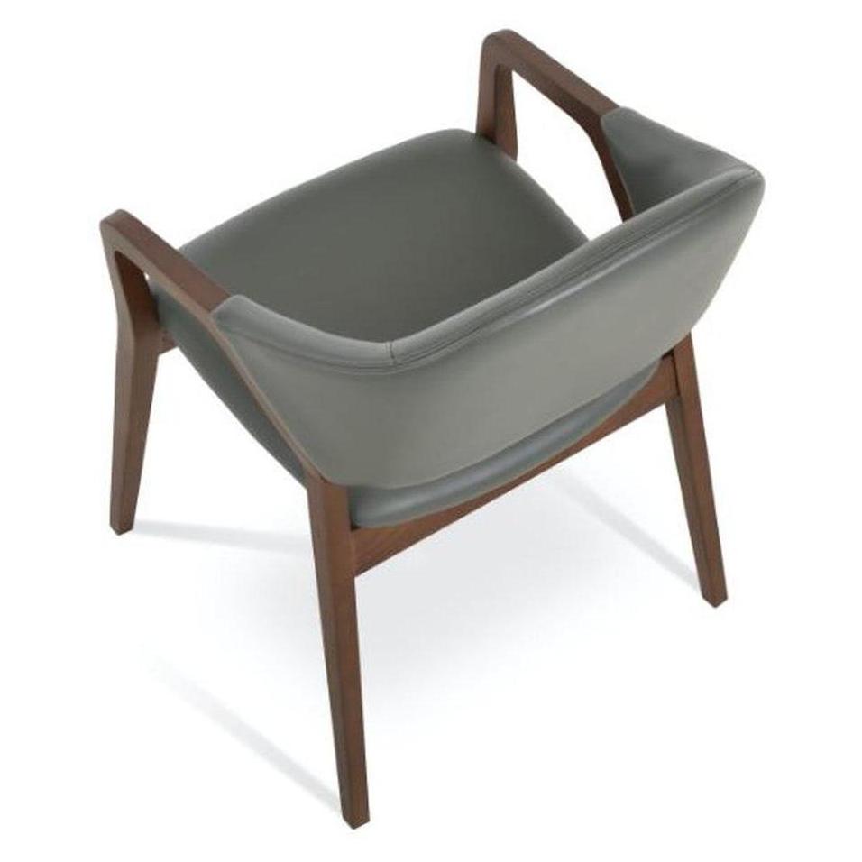 • Structure / matériaux : Sa structure est en bois de frêne massif avec une finition noyer, tandis que l’assise et le dossier sont rembourrés en PPM gris,