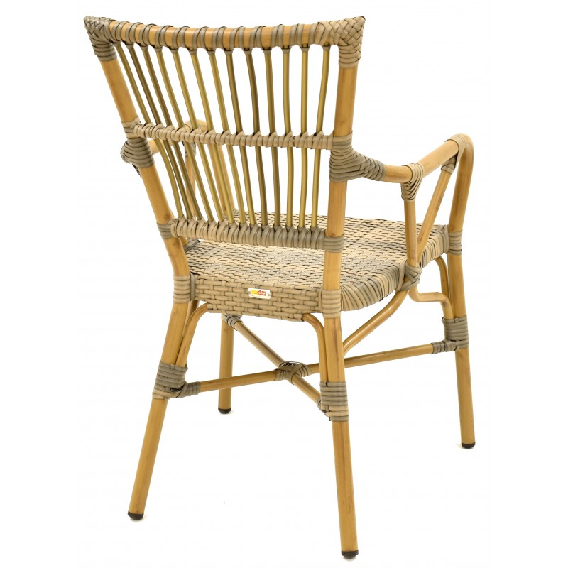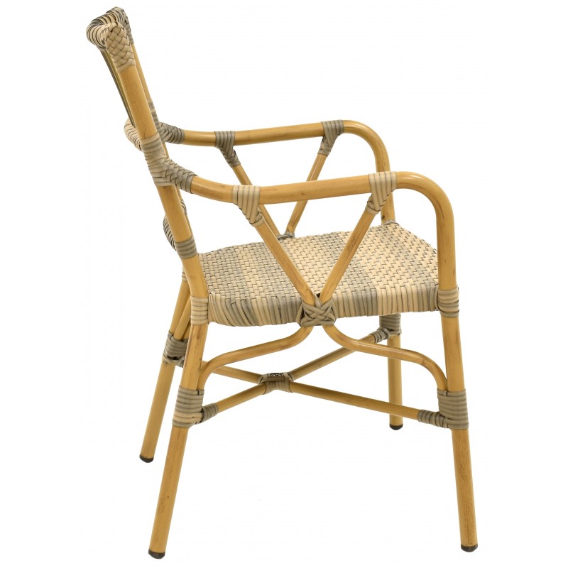 La structure en aluminium garantit légèreté et robustesse tout en résistant à la corrosion. L’assise en rotin synthétique, finition marron et gris, offre un rendu naturel et chaleureux. Ce choix de matériaux assure une bonne tenue dans le temps, même en usage fréquent.