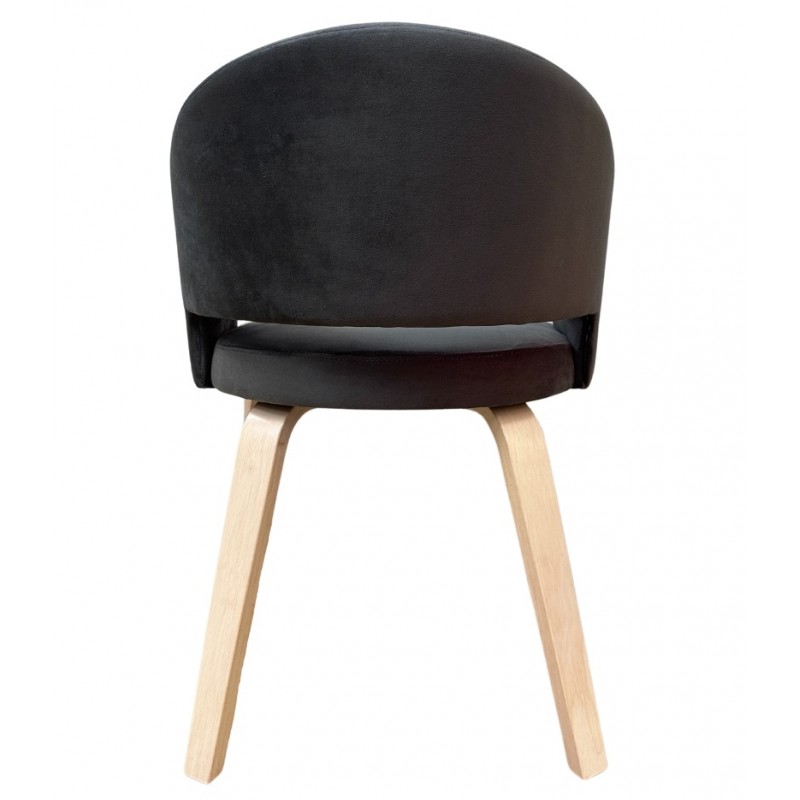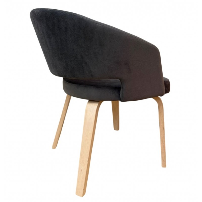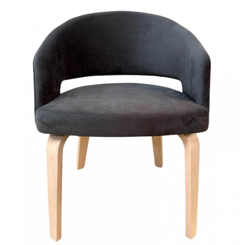 Fauteuil Vrety en contreplaqué d’hévéa naturel, assise en velours gris foncé