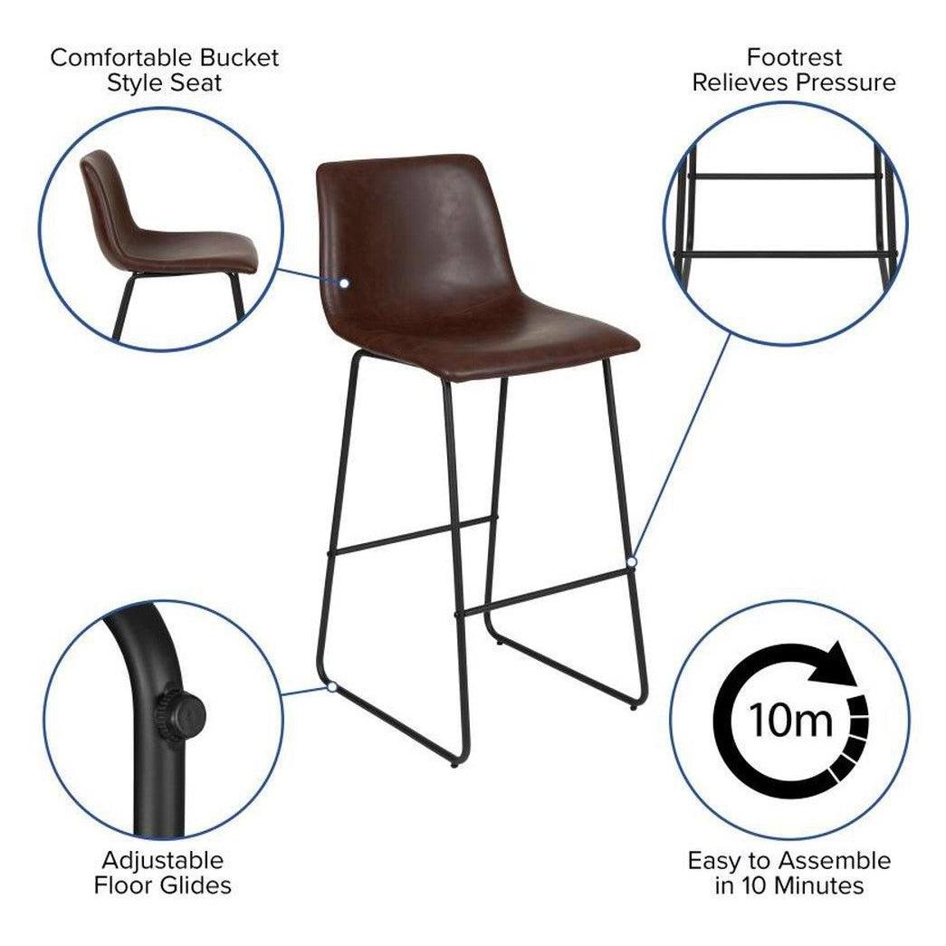 • Points techniques clés : Les tabourets disposent d’un siège en forme de seau, d’un repose-pieds pour un meilleur confort, et d’une base tubulaire avec patins réglables pour une stabilité accrue,