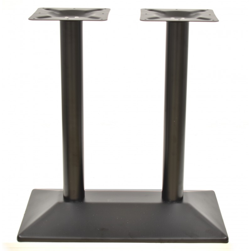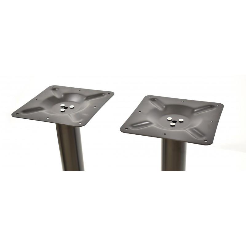 La structure repose sur une colonne cylindrique en acier de 60 mm de diamètre, fixée à une base rectangulaire en acier. La base mesure 70 × 40 cm, assurant une excellente stabilité. La finition est réalisée en peinture époxy noire mate, garantissant une bonne résistance à l’usure. Deux supports de plateau de 24 × 24 cm chacun permettent une fixation sécurisée.