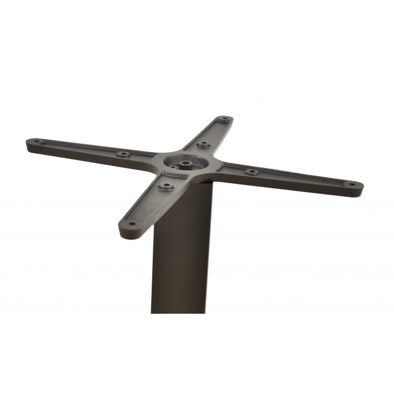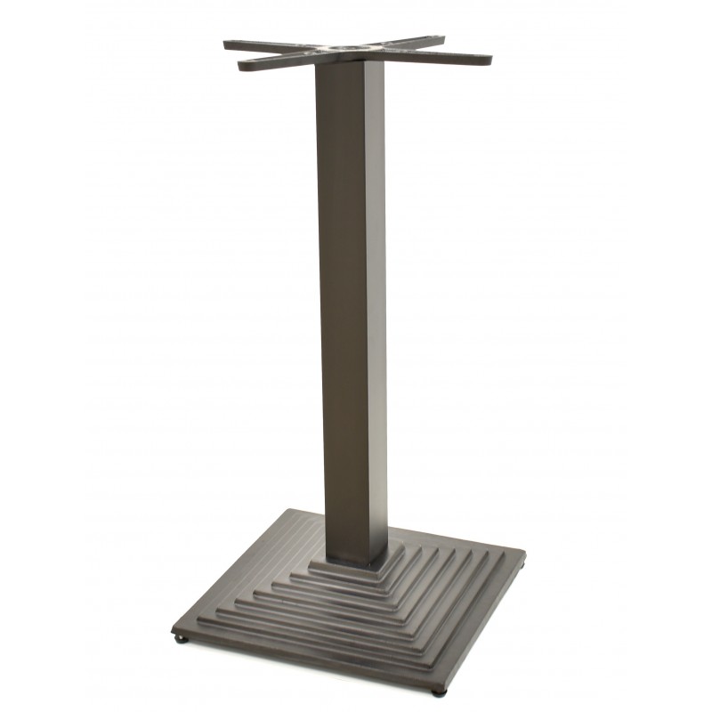 Le piètement repose sur une colonne en acier robuste, fixée à une base carrée assurant une excellente stabilité. La structure est conçue pour supporter aisément des plateaux de table allant jusqu’à 70 cm de côté ou de diamètre. La finition noire mate protège la surface tout en apportant une touche contemporaine discrète.