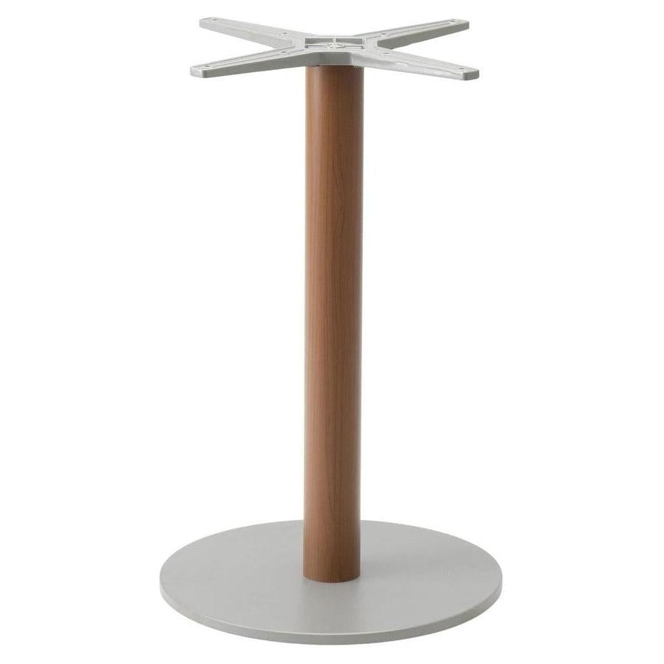 Les piètements de table ronds extérieurs en aluminium avec colonne imitation bois sont conçus pour un usage commercial, offrant une solution esthétique et durable pour les espaces de restauration,