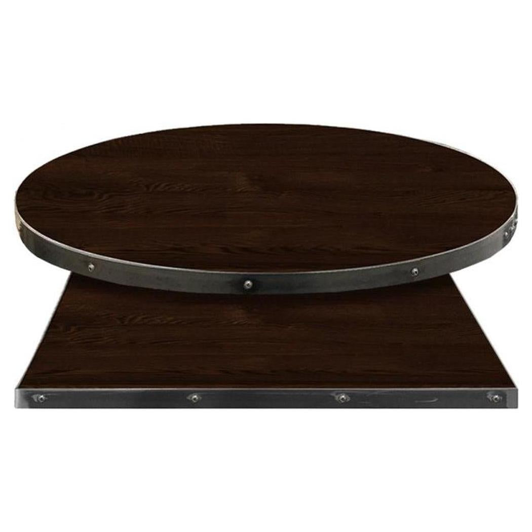 Ce produit est un plateau de table en placage bois, conçu pour apporter une touche rustique ou industrielle à votre espace,